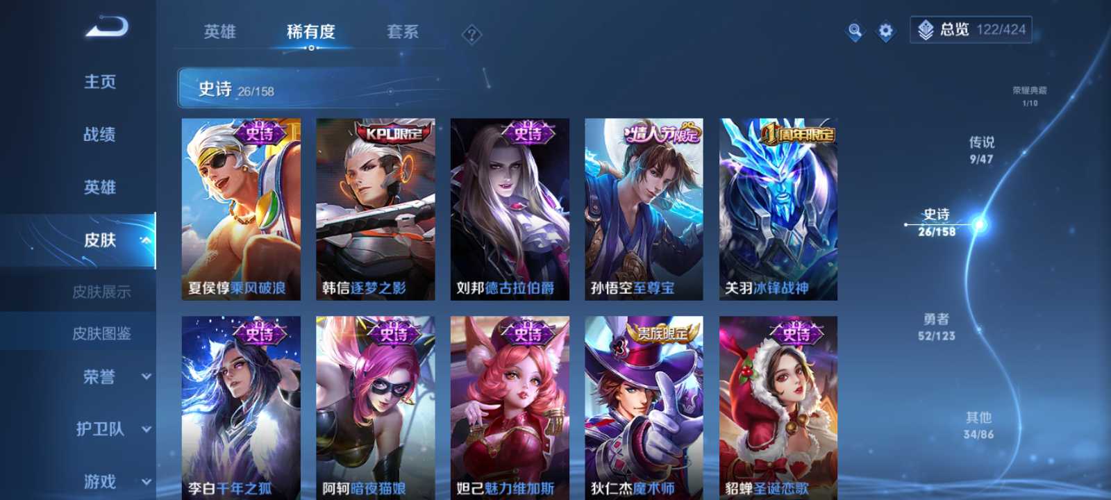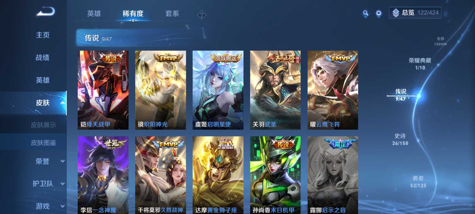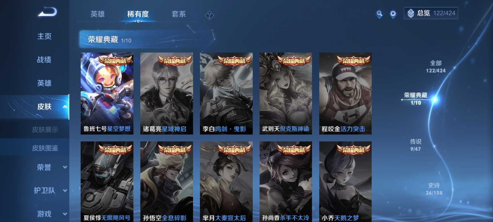 v10、12水539皮、死亡执政官、刘备星传说时之思念、小兵皮肤大耳狗甜茶、瑶无双真我赫兹、愿照·九州拓、怪盗基德、画中仙、至尊宝、凤求凰、神威、天魔缭乱