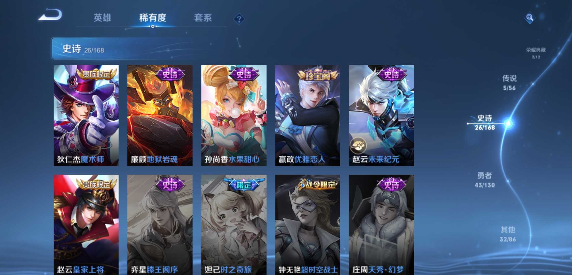 上不去看最后一张图游戏名字长租扫码上号无双贵族10,极品674皮,新皮肤基本全有,满珍品,7无双,10典藏,神威,炽阳神光,还有许多极品皮肤看图皮肤
