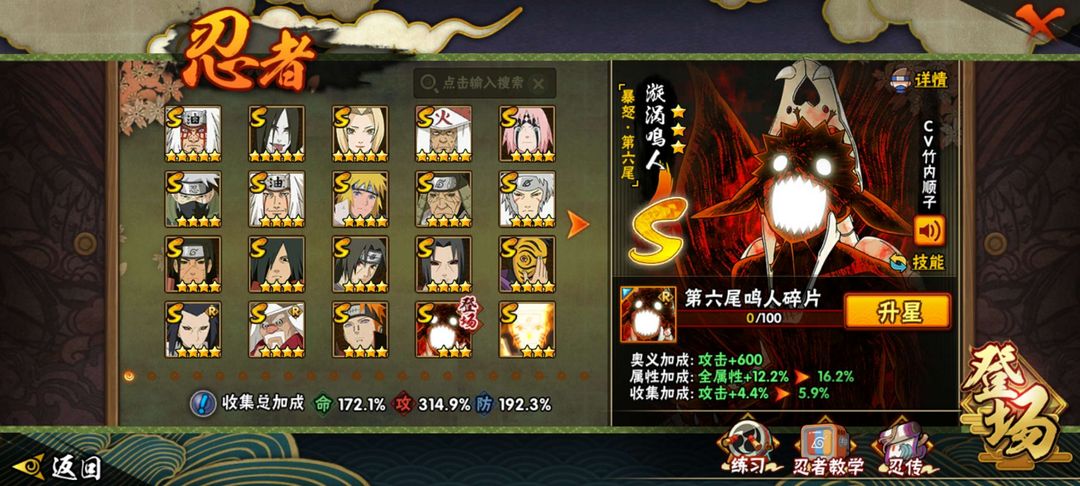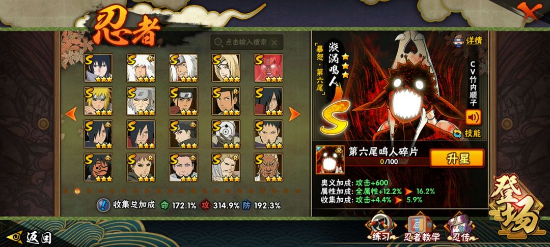 全高招 须佐卡卡西 秽土解斑 漂泊小南 红夜之刃面具男 永恒佐助 六代目水影长十郎大筒木金式卑留呼青年长门九喇嘛鸣人忍战大野木青年艾死门凯 博人传达鲁伊 木叶创立斑 忍战带土 鬼鲛皮肤 青年水门 罗沙 秽土初代 忍战奇拉比 新春止水 秽土鼬 腿影 仙人兜 漂泊再不斩 新春鼬 天道超