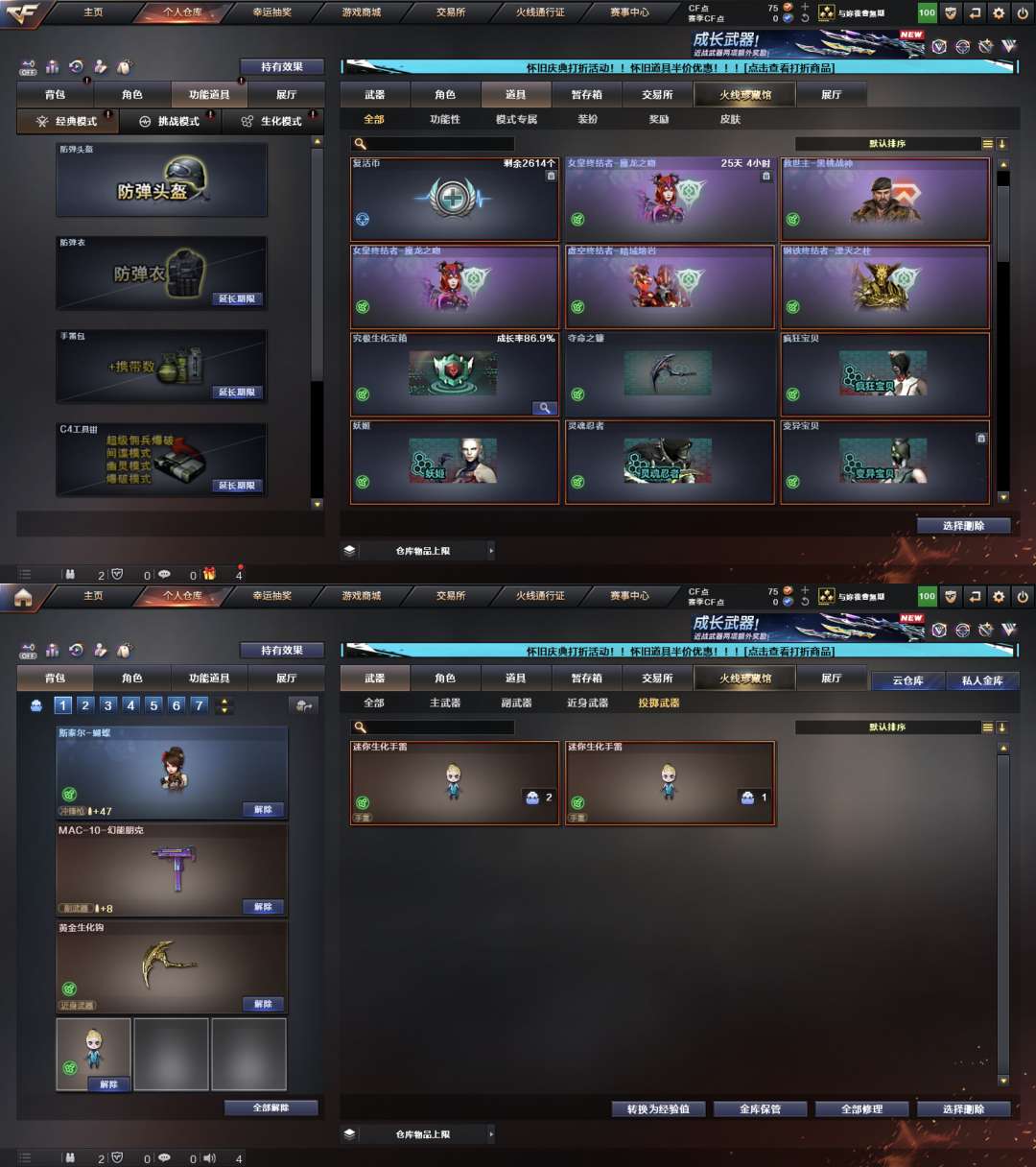 南部极品百v生化号/六列蝴蝶/四盘炼狱带皮/四方兰-巾帼英雄/生化道具都是永久的,弹夹都是几百天的/双娃娃雷/裁决/虚空,女皇,钢铁皮肤/六英雄级手枪子弹加成