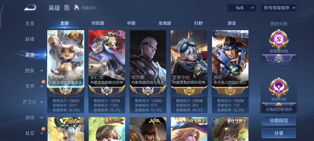 大国千场李元芳⭐小国数字标7狄仁杰⭐小国司空震⭐68段发育路⭐射手绝活必备⭐信誉够可巅峰
