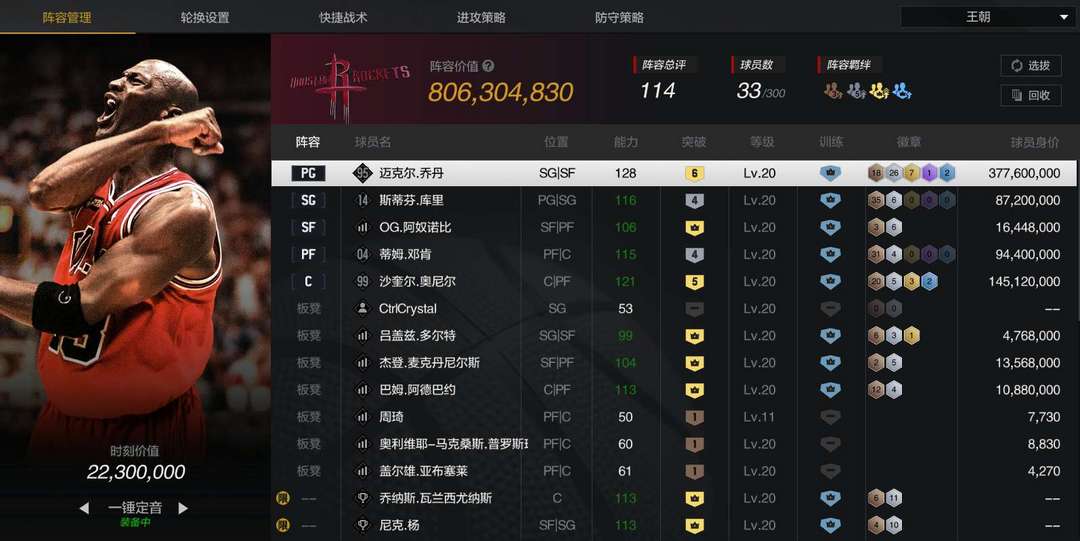 8亿阵容,全员满训双小时刻六乔五鲨四库里四新邓肯带队,6突姚明,收藏林书豪、满突王治郅,崔永熙、李凯尔(中国国家龙之队阵容)应有尽有,满突满训大锁OG阿奴诺比、杰登·麦克丹尼尔斯、阿德巴约、雷霆金徽章潜力锁子多尔特,复刻8号科比、有火箭历史队服,有进球名人堂特效、多种篮球皮肤、完美投篮特效、音效、球员指示器,王朝街头皆可排位畅玩,累租10h可私妹妹+wei哦。注:如果因个人行为(如消极游戏,强行退出游戏,异常离开比赛)被扣信誉分,以后就会拉黑,如果多人有类似现象后续账号会设置押金,希望各位哥哥注意下线时间,合理游戏,不要影响账号信誉积分,如果上号后发现信誉分过低导致无法游戏,请不要投诉,正常撤单即可,如果可以容忍请继续游戏,感谢理解!时间快到不要再开游戏,时间快到不要再开游戏,时间快到不要再开游戏!!!