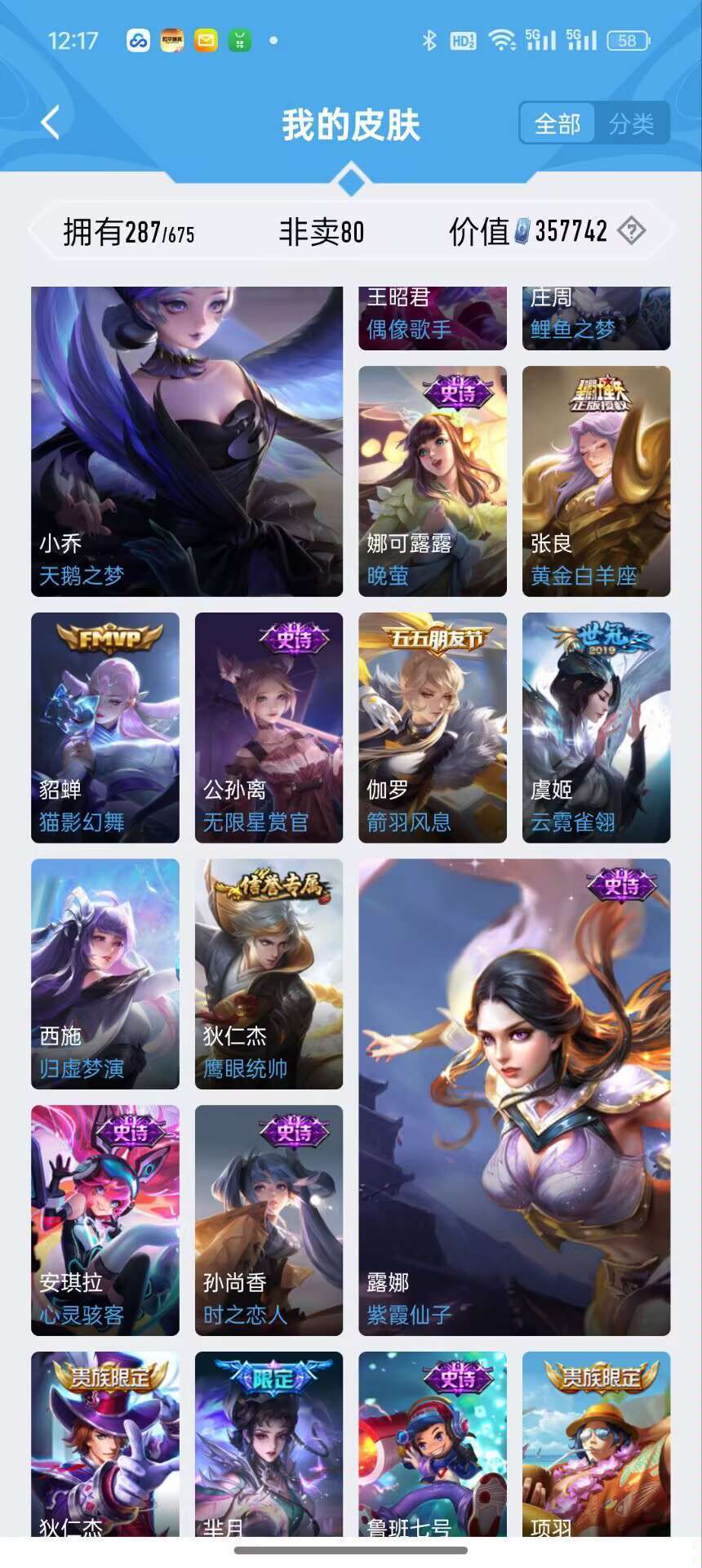 V9丨荣耀四典藏丨典藏半月丨典藏孙尚香丨典藏小乔丨典藏鲁班虎年五套皮肤丨猪年凯丨赵云世冠丨牛年吕布丨牛年孙功离丨520限定孙策丨限定皮肤多多丨挂机永久拉黑!