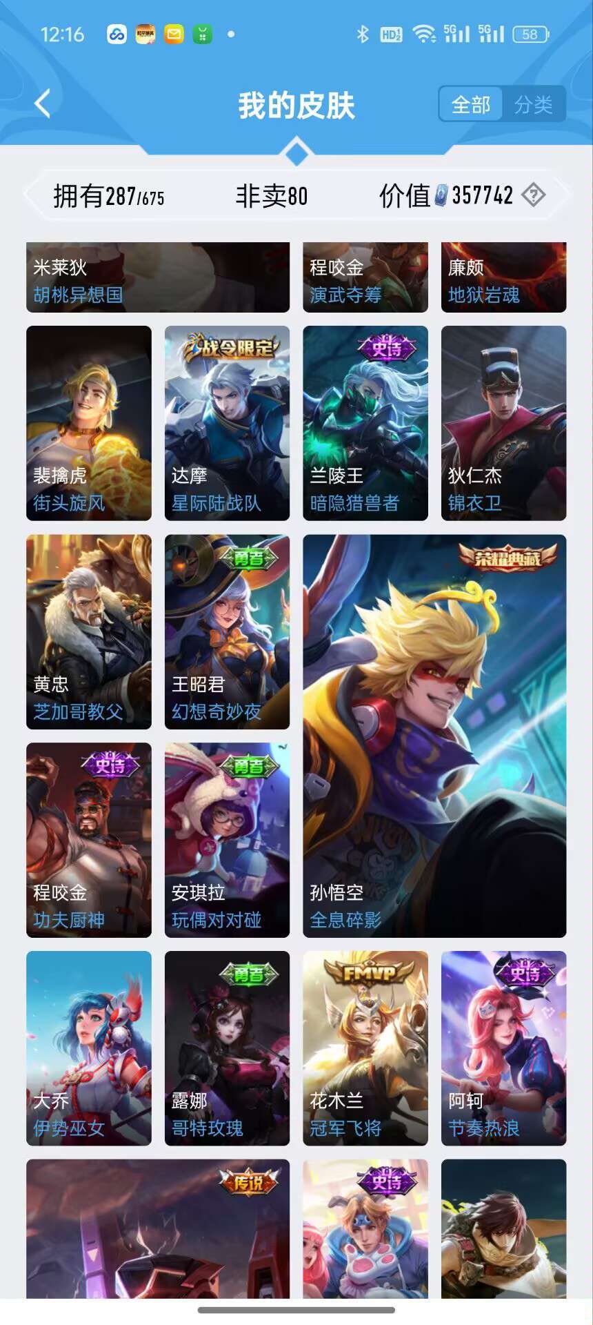 v10、12水539皮、死亡执政官、刘备星传说时之思念、小兵皮肤大耳狗甜茶、瑶无双真我赫兹、愿照·九州拓、怪盗基德、画中仙、至尊宝、凤求凰、神威、天魔缭乱