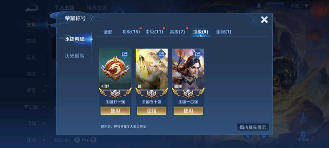 巅峰555名十一月在榜国服镜小国露娜☀历史国服打野☀在榜小国标打野☀多热门省标☀禁巅峰