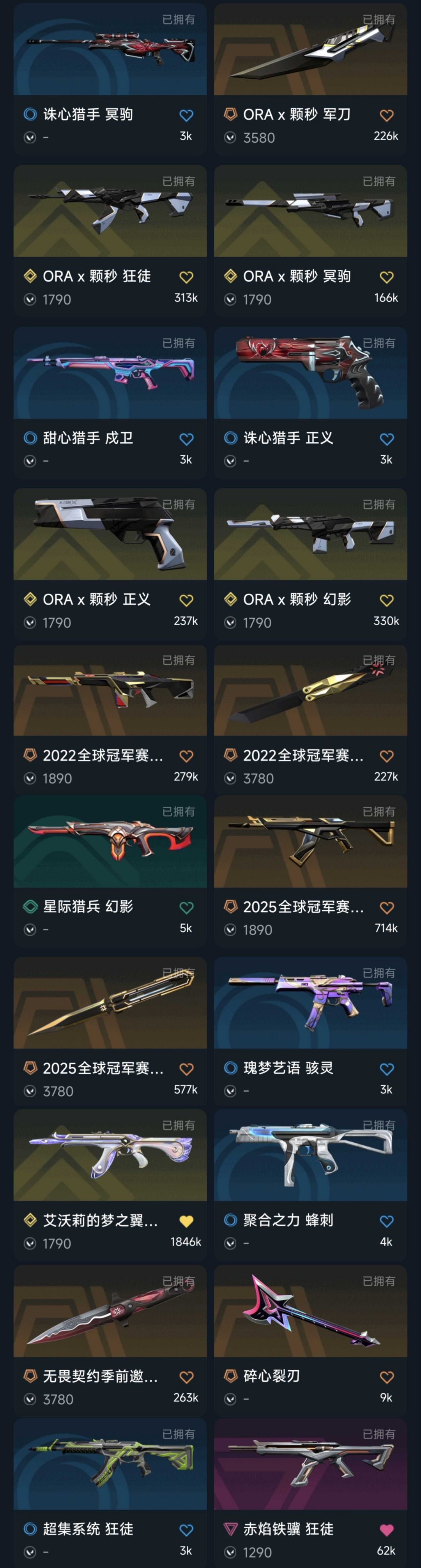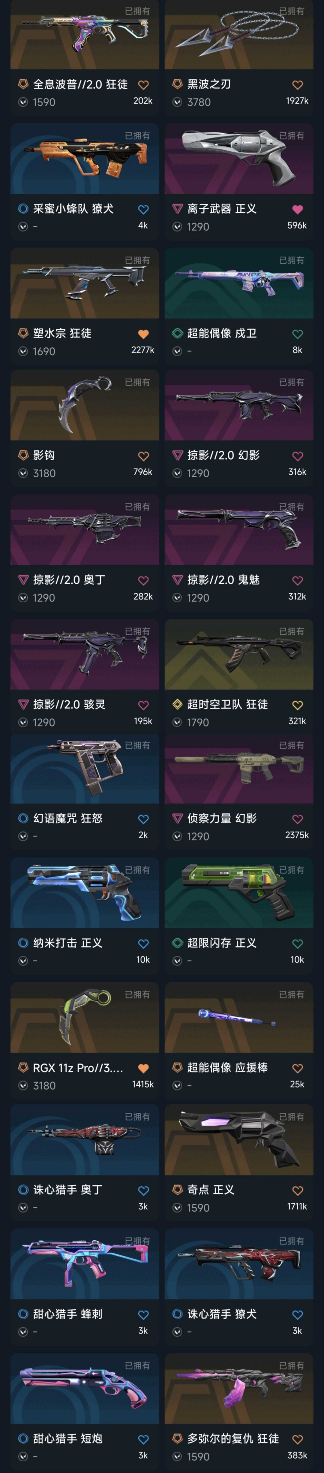 首页 > 租号大厅 > 无畏契约-wegame > wegame/wegame > 真10万库存25/22冠军套♉颗秒套艾沃莉掠影套♏赤焰塑水宗奇点正义侦察幻影♐悲悯黑波之刃RGX爪刀