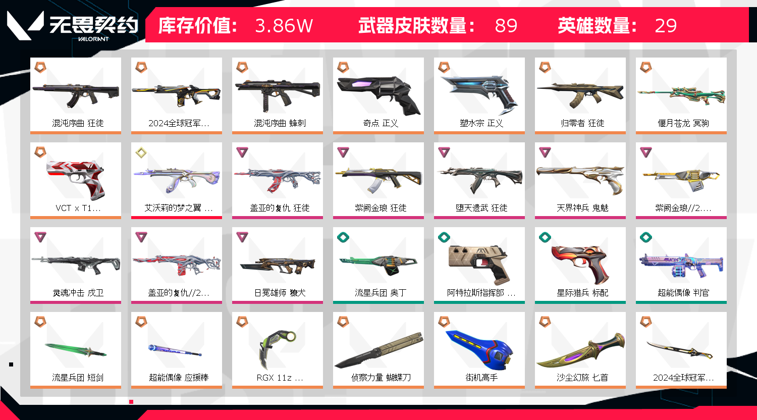 • 皮肤资产价值: 38650