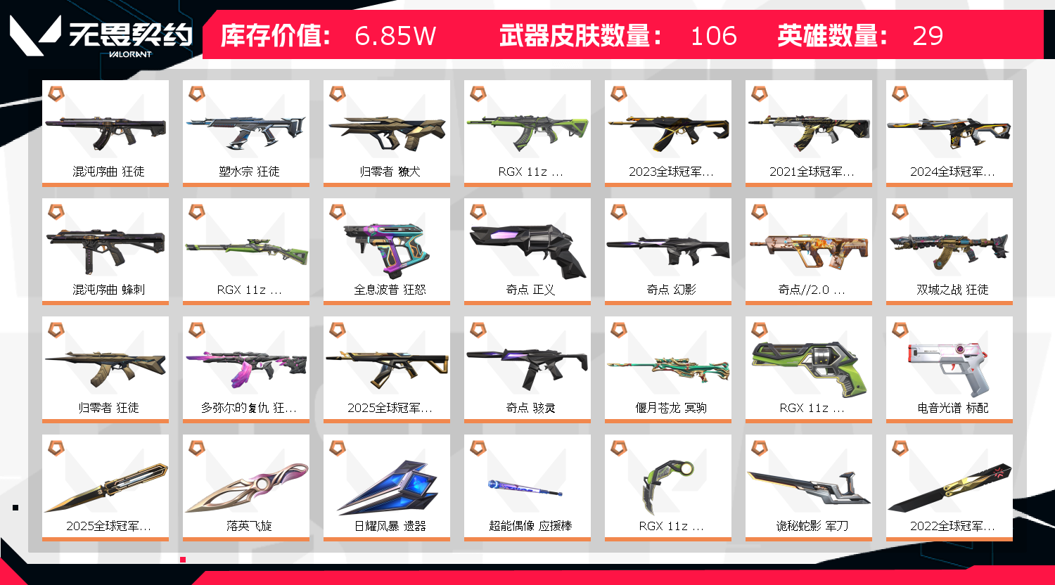 • 武器皮肤数量: 106