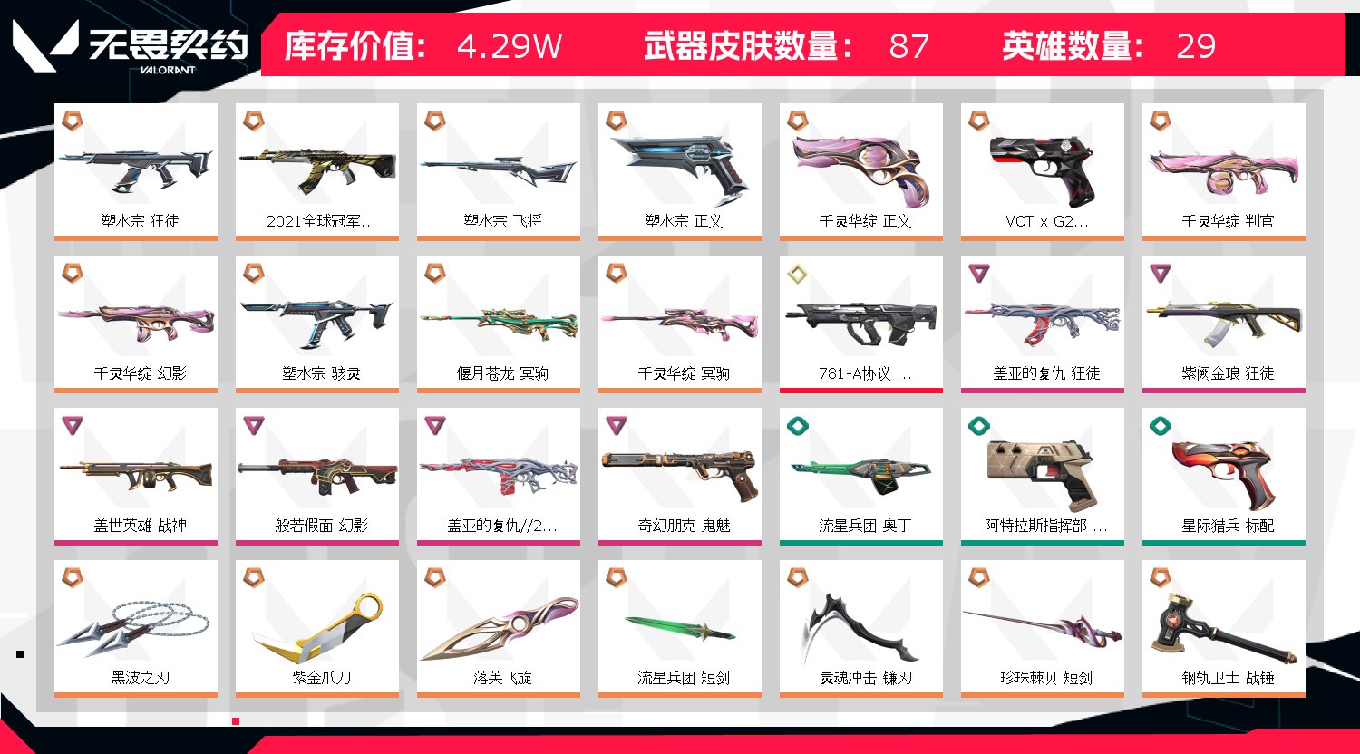 • 皮肤资产价值: 42920