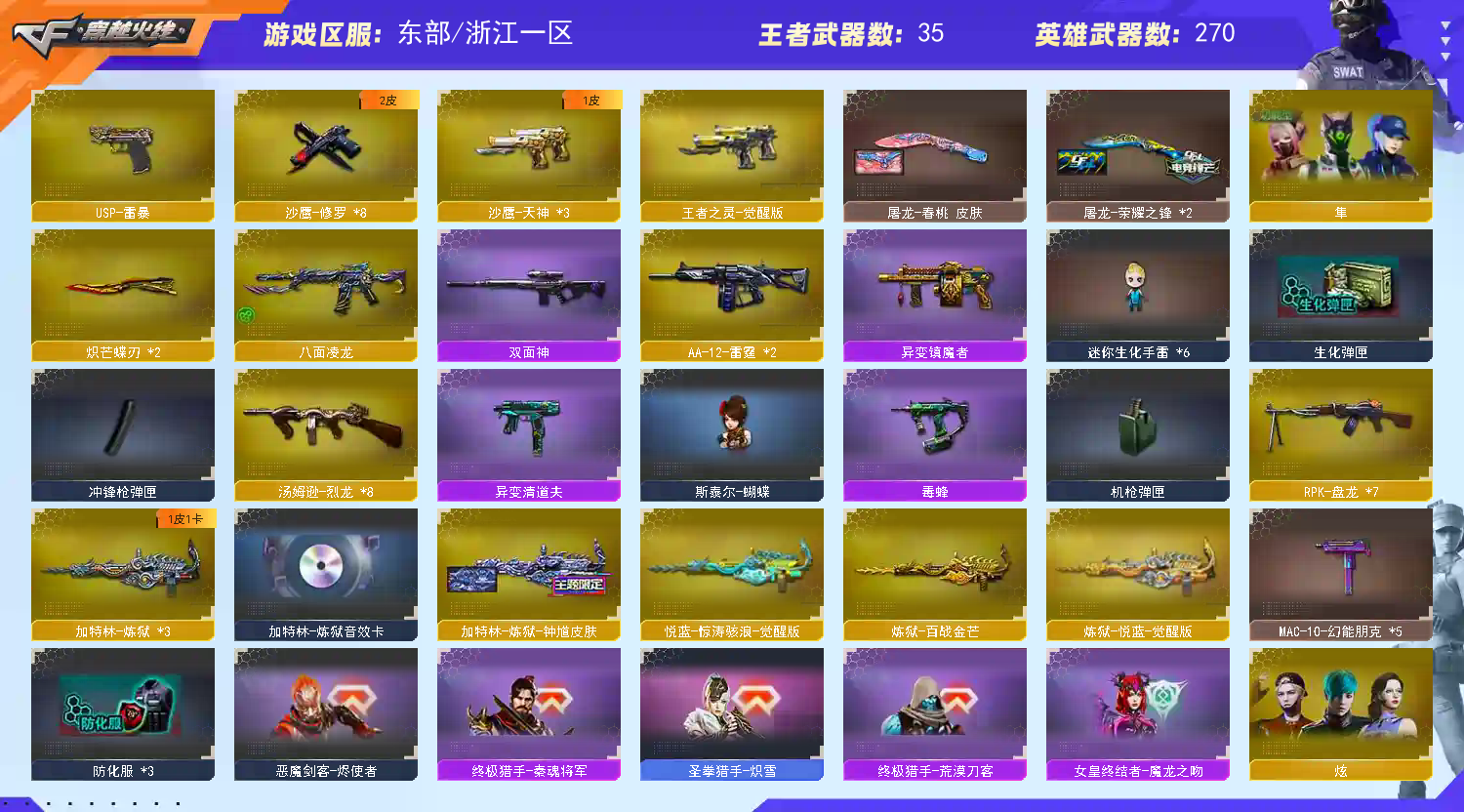• 游戏区服:穿越火线 / 东部 / 浙江一区