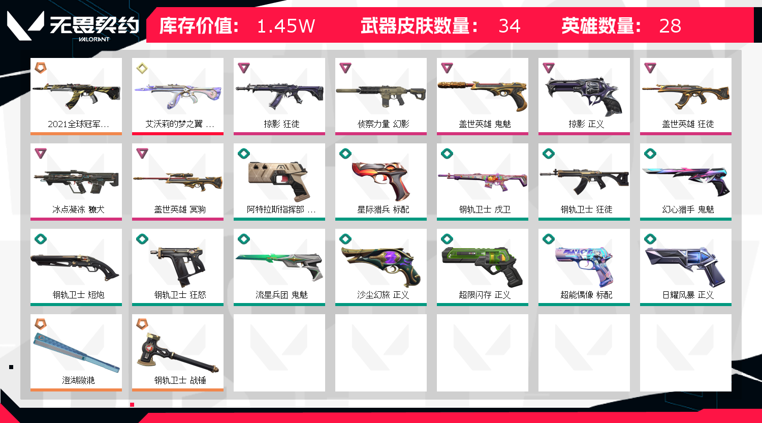 首页 > 租号大厅 > 无畏契约-wegame > wegame/wegame > ❤️掠夺正义狂徒❤️21冠军 扇子 艾沃莉盖世ak侦察m4♥盖世大狙❤️盖世鬼魅