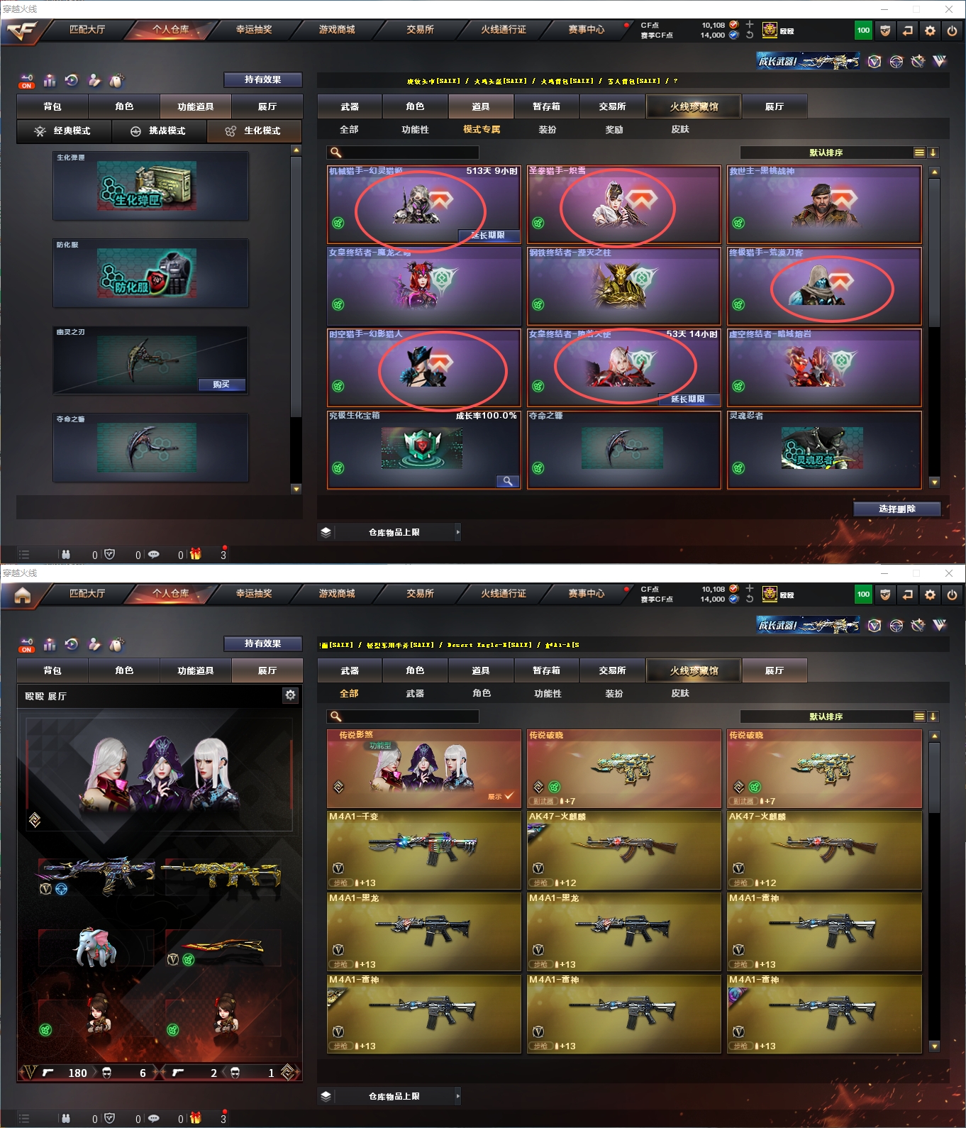 喜欢的老板可以点收藏;USP-雷暴,炽芒蝶刃,沙漠玫瑰,传说影煞,RPK-盘龙,QBZ03-金色蔷薇,炼狱-泡泡象,