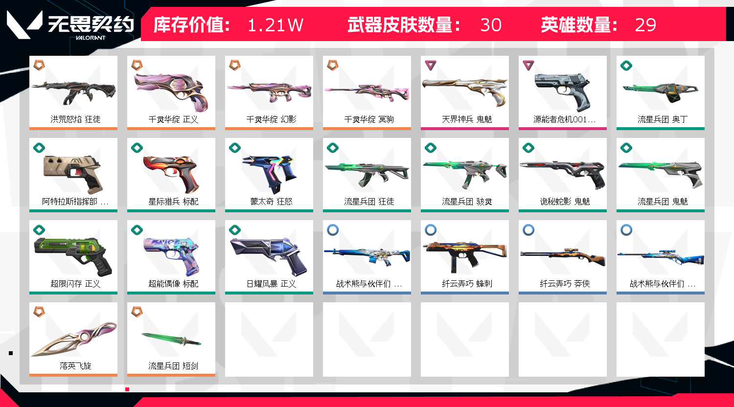 首页 > 租号大厅 > 无畏契约-wegame > wegame/wegame > 官方最低价千灵华绽全套,鎏金鬼魅,大师赛最高出场洪荒怒焰狂徒,限定情人节猫猫最贵挂饰,美漫风手枪等