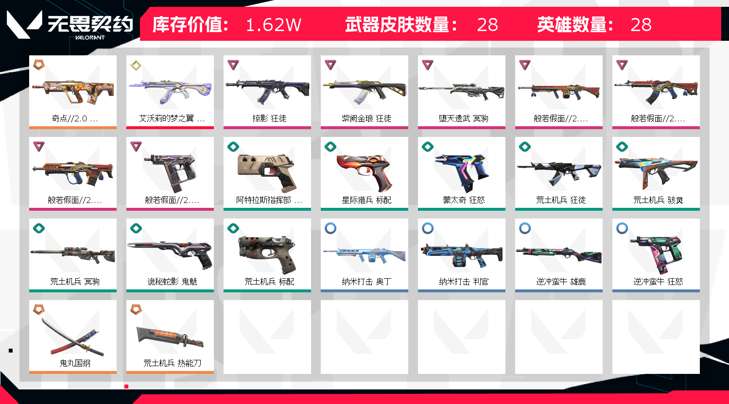 首页 > 租号大厅 > 无畏契约-wegame > wegame/wegame > 冻结秒解✨鬼丸国纲/般若假面套✨ 艾沃莉的梦之翼 狂徒✨掠影 狂徒✨奇点//2.0 狂徒