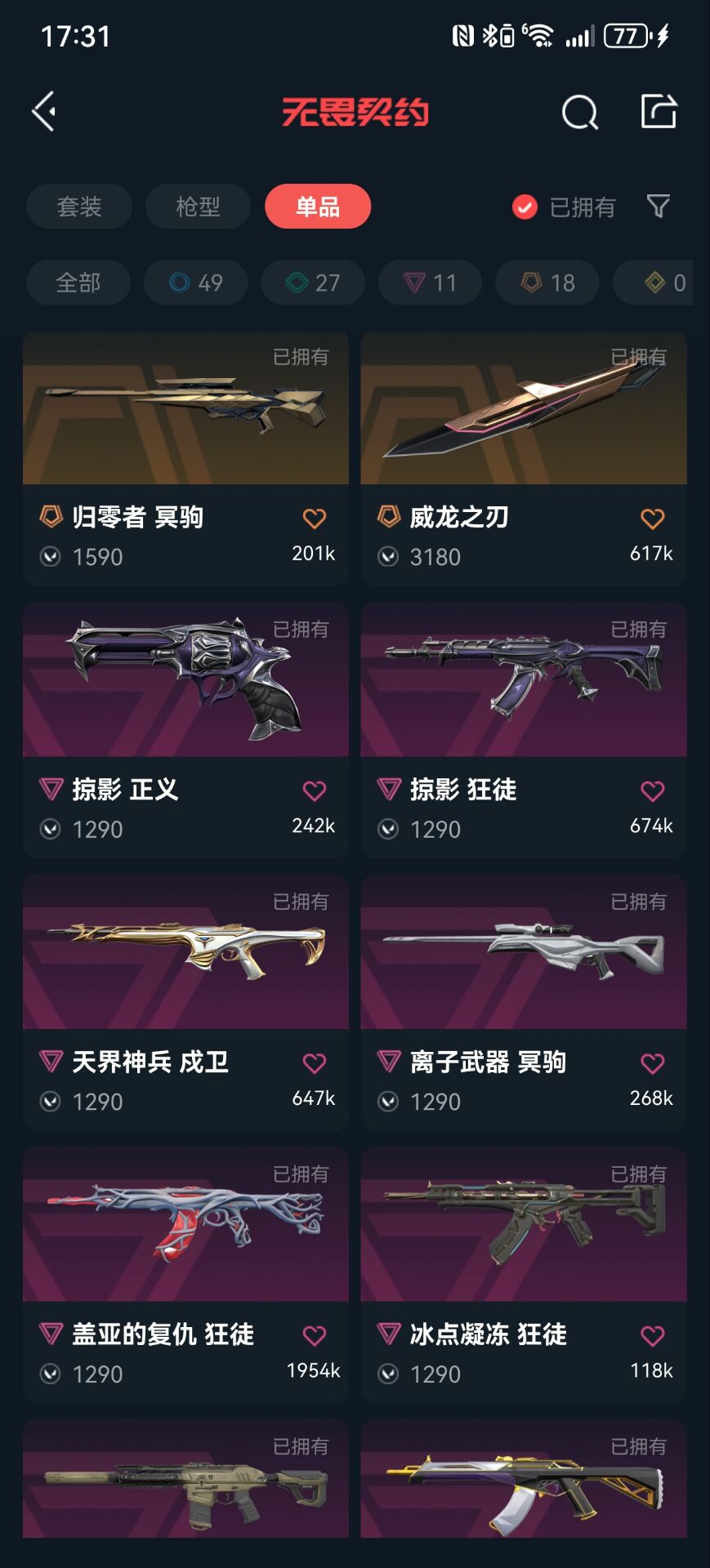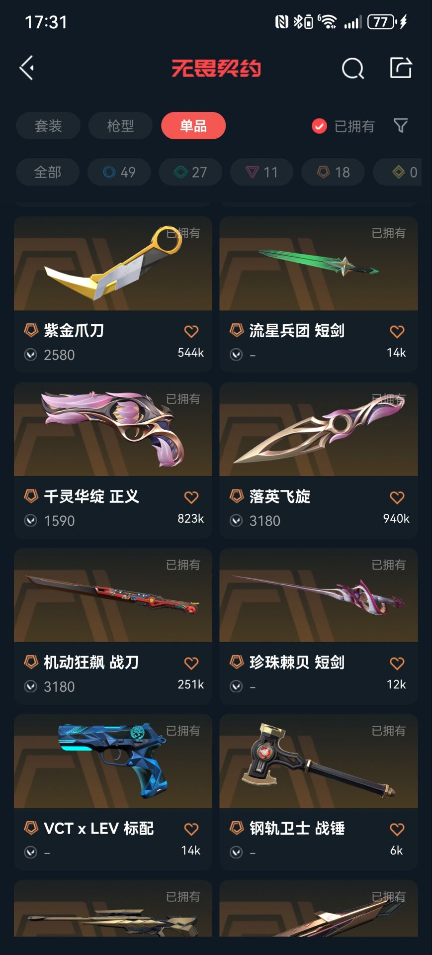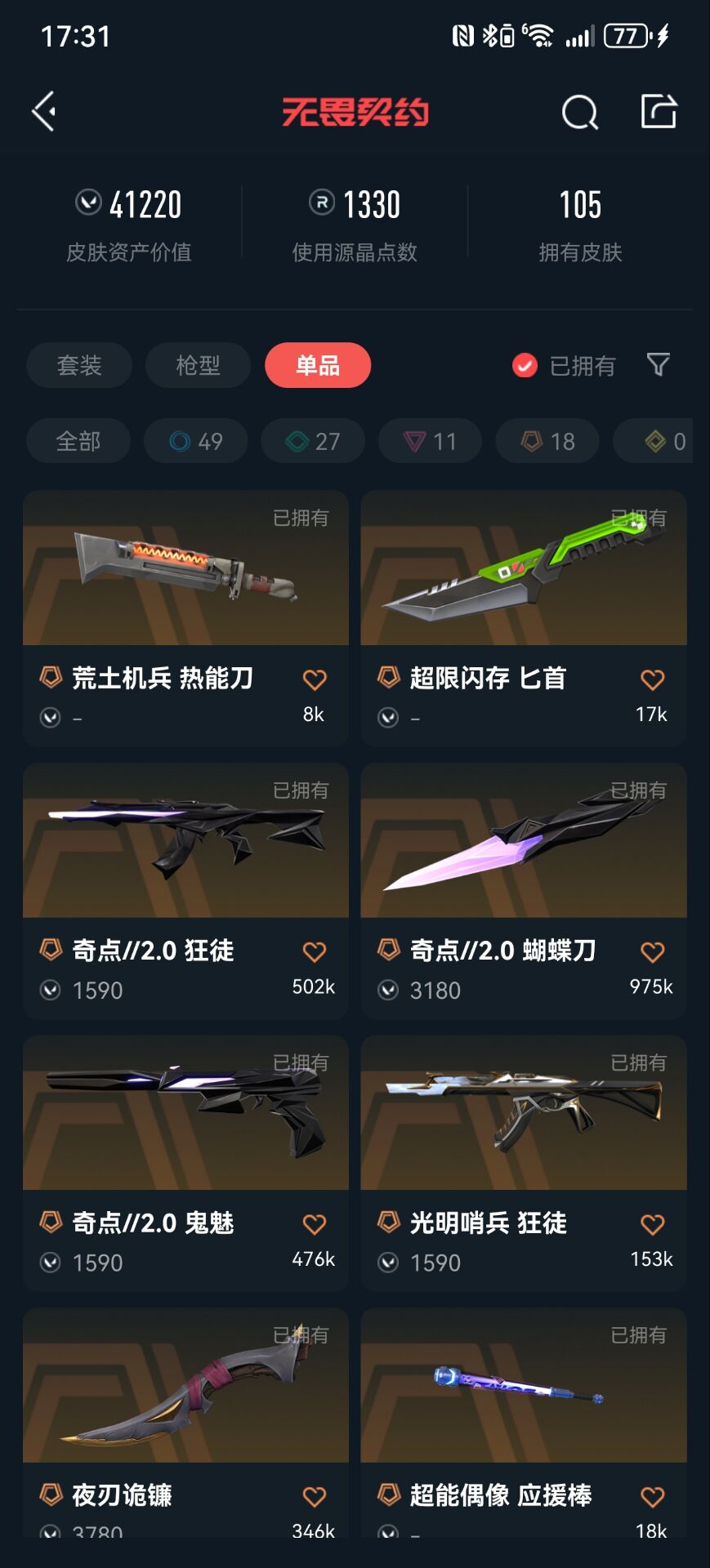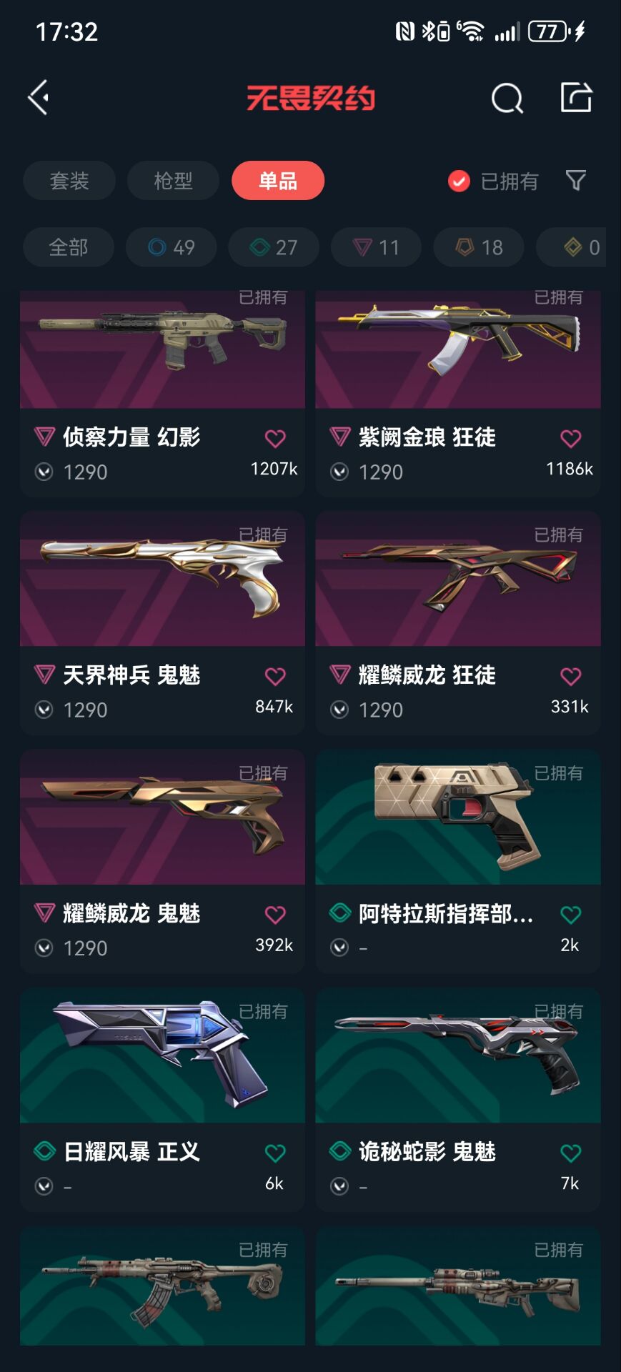 首页 > 租号大厅 > 无畏契约-wegame > wegame/wegame > 可排位4w库存✨奇点2.0套全特效✨耀鳞威龙套全特效✨掠夺/光明哨兵/盖亚/紫金/狂徒✨紫金爪刀