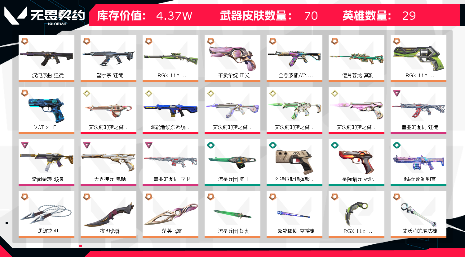 • 皮肤资产价值: 43730