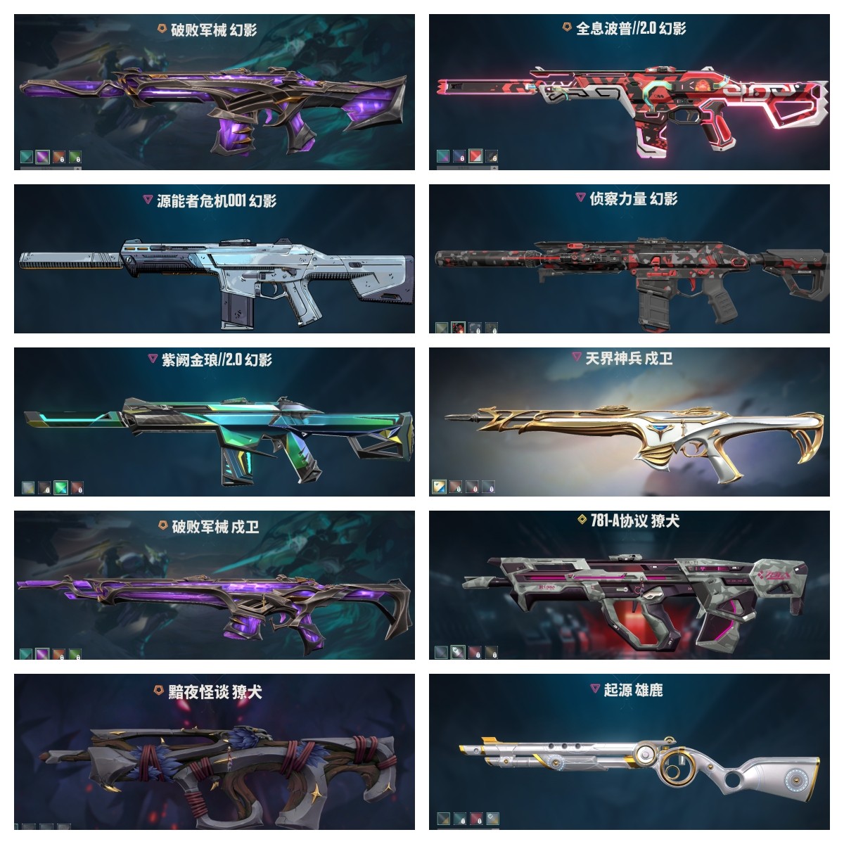 【拥有步枪】光明哨兵-狂徒,混沌序曲-狂徒,双城之战-狂徒,洪荒怒焰-幻影,归零者-狂徒,偃月苍龙-狂徒,781-A协议-幻影,781-A协议-獠犬,紫阙金琅//2.0-幻影,天界神兵-戍卫,紫阙金琅-狂徒,迷邃星云-幻影,盖亚的复仇-狂徒,侦察力量-幻影,耀鳞威龙-狂徒-,源能者危机001-幻影,般若假面-幻影,掠影-狂徒,荒土机兵-狂徒,超限闪存-幻影,超能偶像-戍卫,超能偶像-狂徒,流星兵团-狂徒,珍珠棘贝-幻影,珍珠棘贝-戍卫,钢轨卫士-狂徒,钢轨卫士-戍卫,纳米-幻影,逆冲蛮牛-戍卫,逆冲蛮牛-獠犬,模拟赫兹-獠犬,浮光跃金-戍卫,聚合之力-幻影,采蜜小蜂队-獠犬,战术熊与伙伴们-戍卫,复古浪潮-獠犬,战术小伙伴-獠犬,战术小伙伴-幻影,