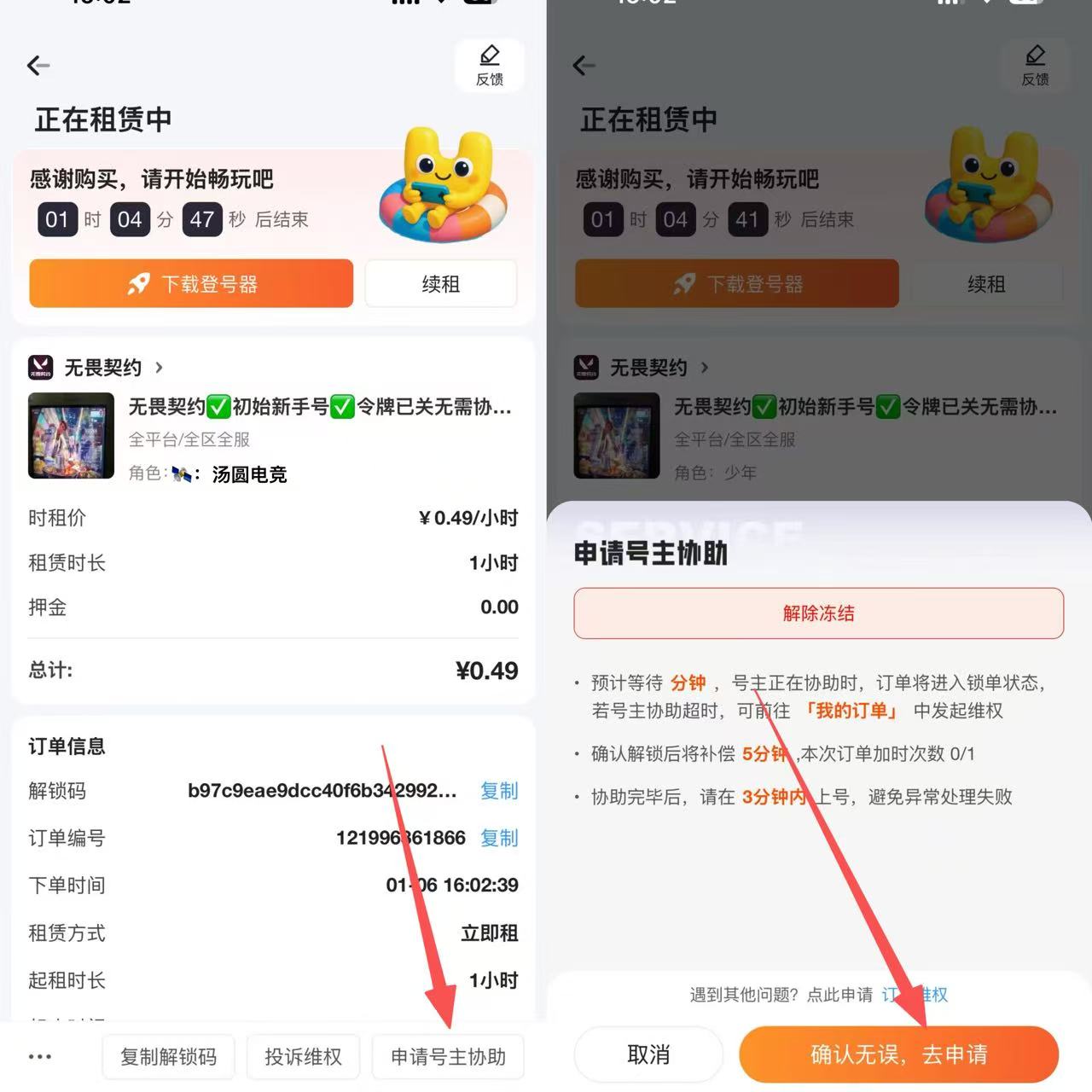 • 租号押金:0.0(订单结束后24小时退还)