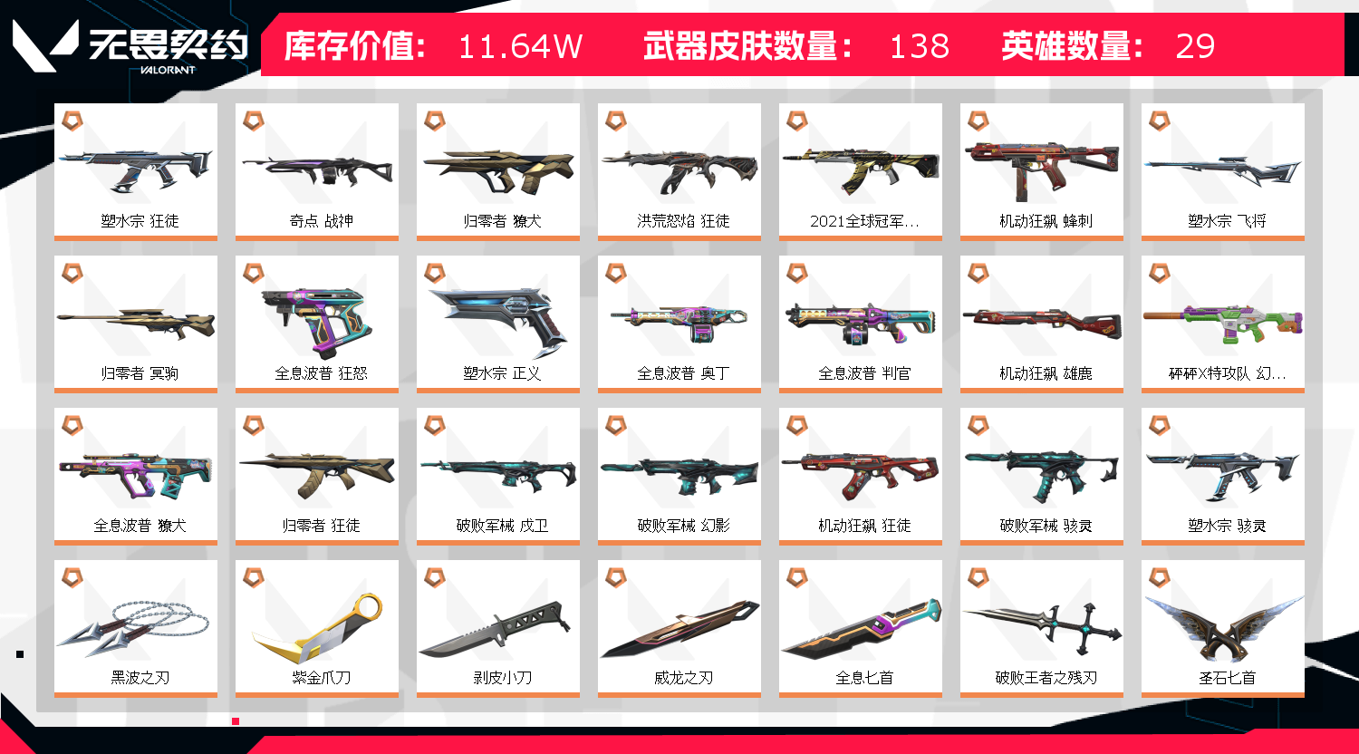 • 武器皮肤数量: 138