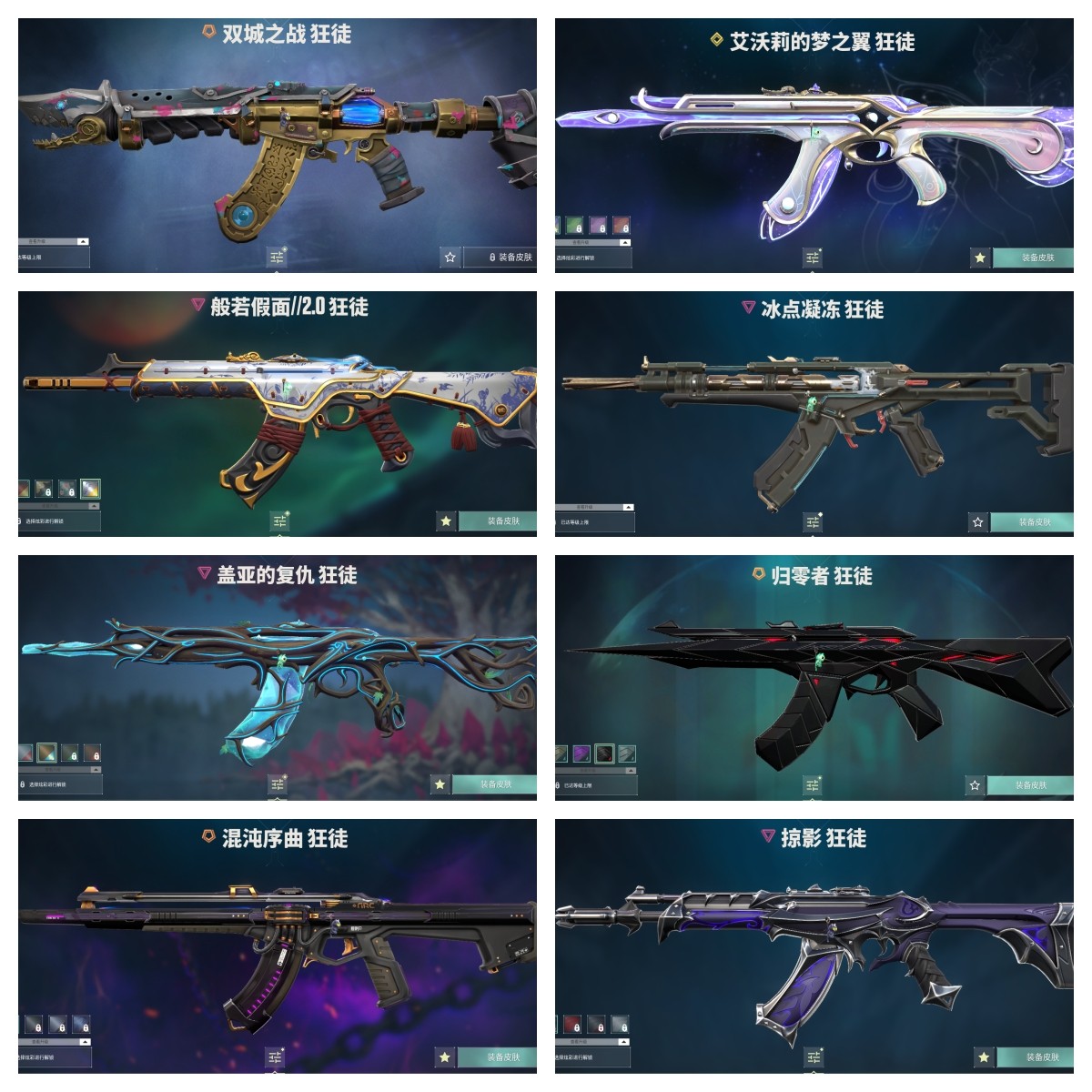 【拥有套装】双城之战套装(双城之战-狂徒,双城之战-拳套)塑水宗套装(塑水宗-骇灵,塑水宗-狂徒,塑水宗-飞将,塑水宗-正义,黑波之刃)般若假面2.0套装(般若假面//2.0-狂徒,般若假面//2.0-獠犬,般若假面//2.0-战神,般若假面//2.0-狂怒,鬼丸国纲)光明哨兵2.0套装(光明哨兵//2.0-幻影,光明哨兵//2.0-奥丁,光明哨兵//2.0-骇灵,光明哨兵//2.0-短炮,圣石匕首)RGX-11z-Pro//3.0套装(RGX-11z-Pro//3.0-莽侠,RGX-11z-Pro//3.0-正义,RGX-11z-Pro//3.0-爪刀)艾沃莉的梦之翼套装(艾沃莉的梦之翼-狂徒,艾沃莉的梦之翼-奥丁,艾沃莉的梦之翼-骇灵,艾沃莉的梦之翼-鬼魅,艾沃莉的魔法棒)掠影套装(掠影-狂徒,掠影-冥驹,掠影-戍卫,掠影-正义,影刃)