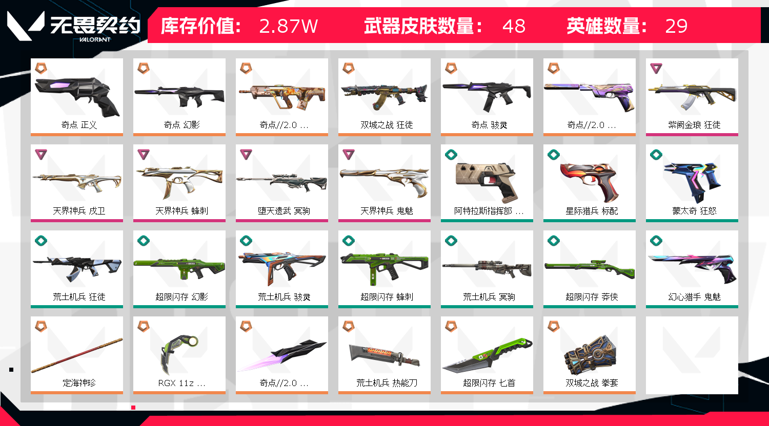 • 皮肤资产价值: 28710