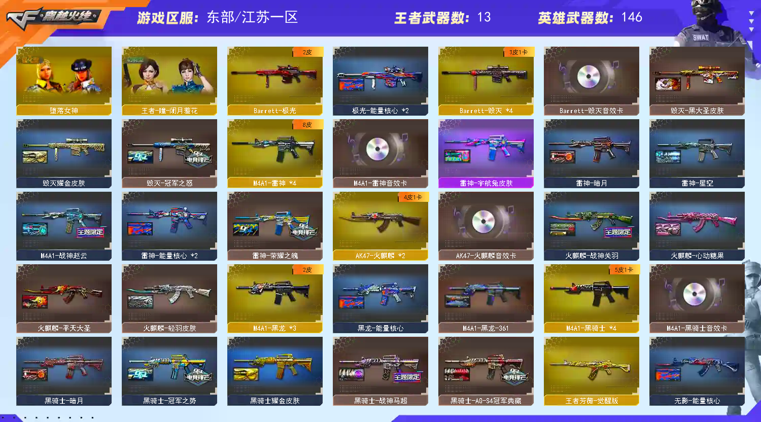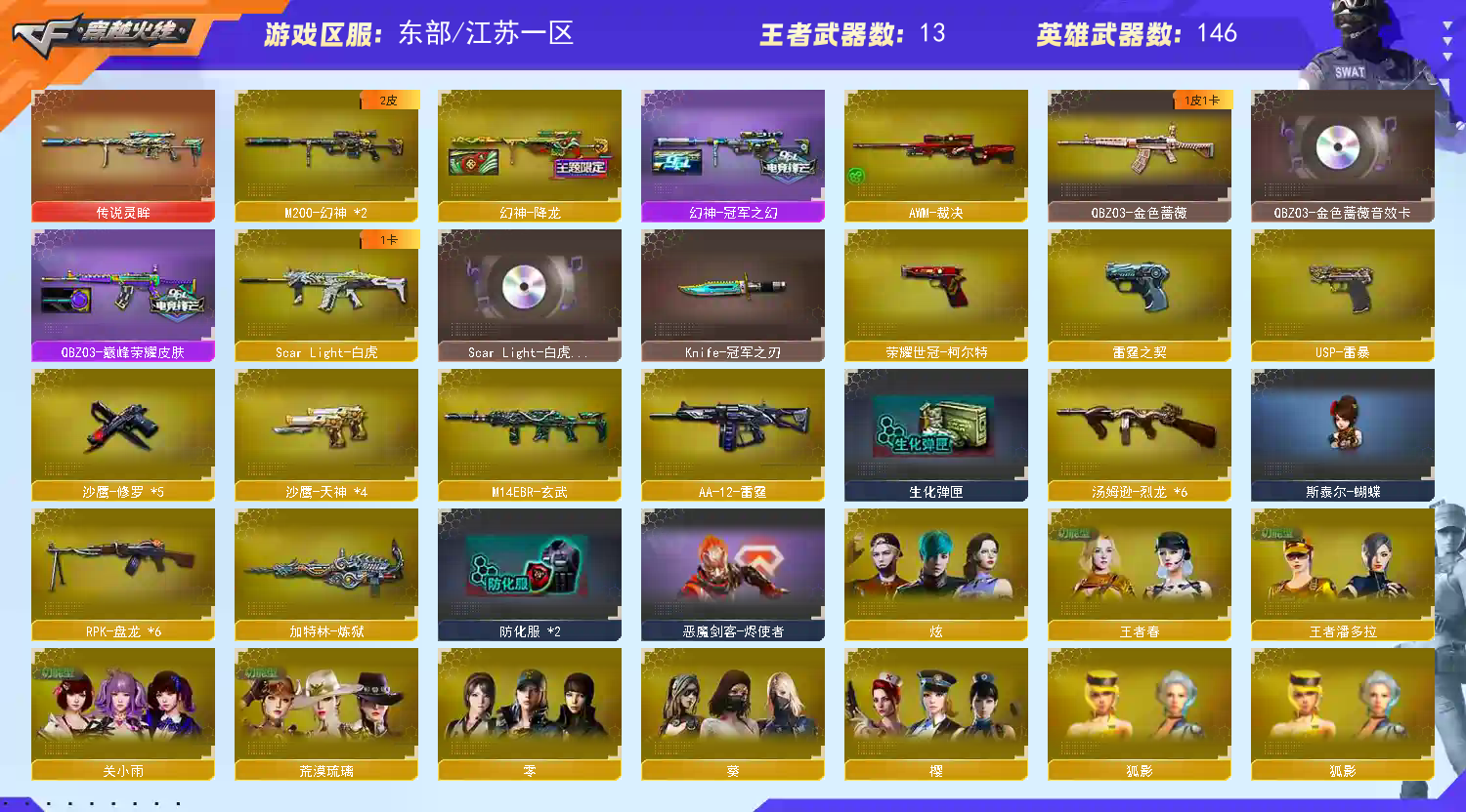 东部天花板号【双字ID极品】 146V可排🔥传说灵眸+幻神双皮+幻神降龙冠军之幻+冠军之刃🔥巅峰赵云马超典藏皮🔥荣耀世冠蝴蝶【江苏一区登录】【炫金稀有顶1V介意者勿租】【恶意投诉、撤单不想玩了租错号了等非帐号问题1律拉黑】【此号已备案请勿以身试法】 【重要套装】雷霆套装/雷暴套/超多四防角色 【重要角色】_葵/_炫/关小雨/_樱/荒漠琉璃/_零/王者春/王者-瞳-闭月羞花/王者潘多拉/狐影/堕落女神/乔伊教练/电竞少女/职业选手/铁骑荣耀/零-水下丽影/灵狐者-黄金海岸/兰-海滩派对/云海玲珑 【传说武器】传说灵眸 【英雄武器】_M200-幻神(2)/Barrett-毁灭(4)/Barrett-极光/Barrett-朱雀/barrett-金色蔷薇(3)/雷霆之怒/王者之怒-觉醒版/AWM-天龙(2)/AWM-裁决/M4A1-雷神(4)/M4A1-死神/M4A1-黑龙(3)/M4A1-龙血/M4A1-千变(3)/M4A1-黑骑士(4)/黑骑士-海王(2)/M4A1-武圣/M4A1-雷霆/M4A1-猎神/M4A1-玫瑰精灵/王者之魄-觉醒版/王者之幻-觉醒版/HK417-朱雀/Scar Light-白虎/M14EBR-玄武/AK12-天启(3)/AK47-火麒麟(2)/荣耀世冠-火麒麟/AK47-无影(3)/无影-神兵利器/AK47-麒麟/AK47-黑鲨/AK47-黑武士/AK-47-猩红传说(10)/AK47-机械迷城/AK47-B-战士/AK47-B-战神/AN94-超新星(2)/QBZ03-金色蔷薇/王者之心-觉醒版/9A91-烈火/RPK-盘龙(6)/汤姆逊-烈龙(6)/AA-12-雷霆/加特林-炼狱/雷霆之契/沙鹰-天神(4)/沙鹰-修罗(5)/Glock18-武圣/荣耀世冠-柯尔特/USP-雷暴/麒麟刺(2)/龙啸/擎天(2)/屠龙(4)/雷霆之锋/斩神刀-雷暴/手雷-动感闪耀/高爆手雷-雷暴(4)/高爆手雷-雷霆(7)/烟雾弹-雷暴(4)/烟雾弹-雷霆(7)/闪光弹-雷暴(4)/闪光弹-雷霆(7)/王者芳薇-觉醒版/烈龙-云海游龙/擎天-云海游龙/手雷-云海游龙 【王者武器】王者之影/王者之势/天启-悦智/王者之怒/王者之力/王者之啸/王者之魄闪光弹/王者之魄高爆手雷 【小人枪】白虎-迷你小艾/海滩汪汪-巴雷特/斯泰尔-蝴蝶/M37-葵/COP-旗袍/迷你深渊冰龙/冰火魔兽(2)/迷你牛牛/闪光弹-小乔/灵狐娃娃手雷 【其他重要武器】炫金无影(3)/炫金黑龙/炫金毁灭/炫金天龙/机械青龙/M4A1-英雄-能量核心/M4A1-十二生肖·龙-雷神/M4A1-仙界-黑骑士/冰龙粉碎者-白马银枪(2)/9A91-赤血龙魂/M4A1-樱/9A91-蓝色骑士/AK-103-红色悦动/AK47-绚樱/M4A1-十年火线/AK47-B-十周年/AK47-轮回/凤凰之魂/AK47-肯德基/M4A1-樱落/9A-91翡翠/9A91-2017万圣节/AK47-圣诞节[2019]/M14EBR-情人节2020/M4A1-紫狱/AK47-青龙/AK47-十年火线/M4A1-破空冰刃/M4A1-情人节2019/AK47-烛龙/M14EBR-赤血龙魂/M4A1-电音/M4A1-肯德基/M4A1C-死亡之翼/HK417-赤血龙魂/AK47-枪娘(2)/M4A1-战龙/QBZ03-掌火萌橙/百城AK47(2)/AN94-青花瓷/红龙AK47/AK47-祥云苍龙/百城M4A1/M4CQBR-AP-孔明/AK47-丹龙/M4A1枪王排位II/M4A1-秘银赤龙(2)/AK47-破空冰刃(3)/AK47-苍龙/AK47-齐天大圣/M4A1-齐天大圣/QBZ03-锋芒破茧/M4A1-圣诞2021/AK-103-火线13周年/AK47-QT/AK12-枪王排位/AK47-十二生肖-蛇/雷神-赛博朋克/M4A1-S-能量核心/XM8-炫彩/AK47-大帝林肯/HK417-赤龙/AK47-万圣节2021/9A-91-圣诞/M4A1-万圣节2020/M4A1-S-十周年/AWM-T/巴雷特-情人节2020/蓝色魅影/AWM-万圣节2019/Barrett-御龙/M200-牡丹/M200-情人节2019/M200-赤血龙魂/AWM-蓝水晶/M200-圣诞/98K-烛龙/AWM-Pink/AWM-涂鸦/M200-万圣节/AWM-十周年/M200-涂鸦/AWM-2018圣诞/M200-万圣节2018/Barrett-炎龙/Barrett-黑大圣/凤凰之力/AWM-S/M200-青帝/M200-神秘黑洞/98K-炫彩/FN弩炮-CFS2017纪念版/M200-萌杀/AWM-A-十周年wegame/M200-大黄蜂/AWM-卡通/AWM-万圣节刀锋/Barrett-怒火大圣/98K-蓝色骑士/AWM-CFS 2020/AWM-红色悦动/Barrett-耀龙/AWM-摸金校尉/巴雷特-绚樱/AWM-枪娘/M200 CheyTac-大圣/98K-火线13周年/AWM-A-圣诞2021/M200-WeGame/MG4-蓝色骑士/KAC-耀龙/M240B-卡通/KAC-小动物/雷蛇冲锋枪/CPW-动力-潘多拉/EVO3A1-火线13周年/P90-炫彩/Steyr TMP-CFS2020纪念版/斯泰尔-巧克力/斯泰尔-CFS2017纪念版/AA-12-圣龙/SPAS-12-雷电核心/Spas-12-黑金/COP 357--绚樱/柯尔特双枪-2017万圣节/凤凰之灵/沙鹰-枪王排位(2)/沙鹰-万圣节2018(3)/Anaconda-炽焰核心(2)/沙鹰-雷蛇/新USP-枪王排位奖励(5)/Anaconda-万圣节2019/Anaconda-黑金神龙/Anaconda-雷电核心/沙鹰-青龙(2)/COP 357-青龙(3)/COP-金蝉子-枪王排位(2)/柯尔特-百城/COP357-神秘黑洞(2)/愤怒的公牛-朋克/愤怒公牛左轮-枪王排位(2)/COP357-十二生肖·羊/COP-青帝/Mauser M1896-CFS 2020/沙鹰-能量核心/修罗-摸金校尉/COP 357-万圣节2020/沙漠之鹰-A-摸金校尉/USP-黑大圣/幻影沙鹰-枪王排位/毛瑟-庆典-CFS 2021/收割者-枪王排位/斩神刀-御龙/军用铁锹-赤龙/啸天/丛林匕首-枪王排位/虹光丛林匕首-枪王排位/斩神刀-青帝/幻影双斧-枪王排位/Knife-冠军之刃/虹光女皇利刃-枪王排位/蝴蝶刀-枪王排位/斩魔刀-怒火大圣/猫猫手套/尼泊尔-炎龙/尼泊尔军刀-9周年/尼泊尔-庆典-CFS 2021/虹光鹰爪-枪王排位/闪光弹-枪王排位(10)/胜利奖杯闪光弹-枪王排位/胜利奖杯烟雾弹-枪王排位(3)/胜利奖杯手雷-枪王排位(2) 【重要武器皮肤】幻神-冠军之幻/幻神-降龙/极光-能量核心/黑骑士-AG-S4冠军典藏/QBZ03-巅峰荣耀皮肤/毁灭-冠军之怒/黑骑士-冠军之势/龙啸-冠军之啸/毁灭耀金皮肤/毁灭-黑大圣皮肤/AWM-天龙-传奇白鲨/天龙-CFSTAR/天龙-能量核心/雷神-荣耀之魄/雷神-宇航兔皮肤/雷神-暗月/雷神-能量核心/雷神-星空/M4A1-战神赵云/黑骑士-战神马超/黑骑士耀金皮肤/黑骑士-暗月/黑龙-能量核心/M4A1-黑龙-361/火麒麟-CFSTAR/火麒麟-AG/火麒麟-平天大圣/火麒麟-心动糖果/火麒麟-战神关羽/火麒麟-轻羽皮肤/无影-能量核心/无影耀金皮肤/AK-47-雷神/战神-流金岁