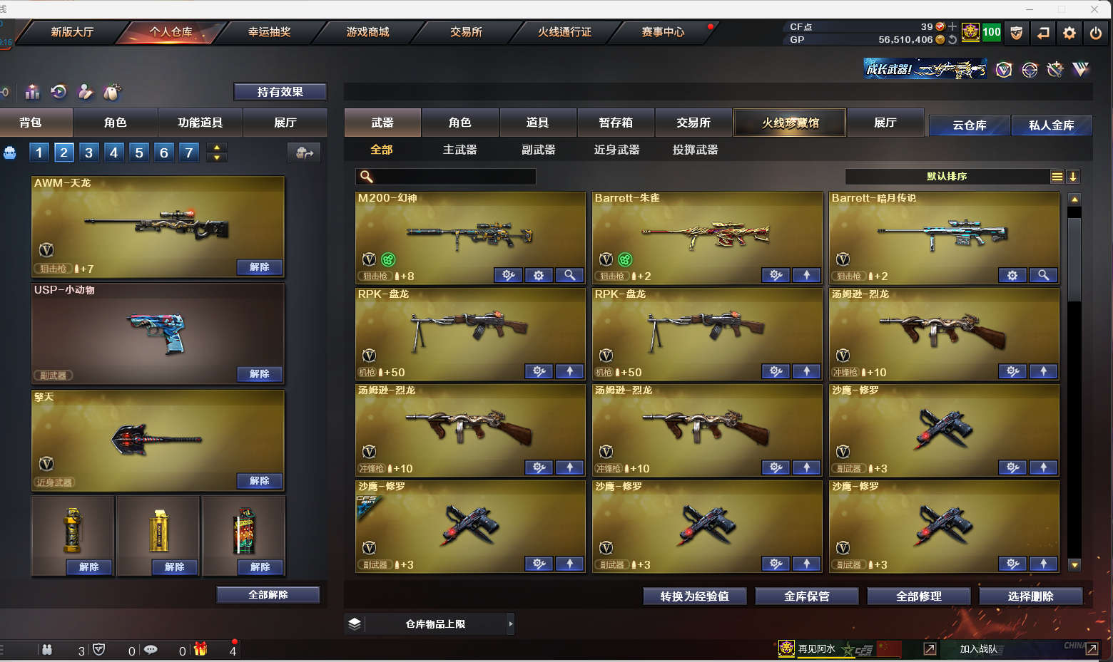 【温馨提示】此号价值数十万,已向公安机关报备,如有开G开辅助封号的,由平台提供,身份信息,证据和地址进行报警处理并依法追究责任!祝各位老板玩得开心。请使用官方启动,更快捷稳定上号。恶意下单维权及检测到外挂将无法再次下单! 祝各位文明租号的租客身体健康,万事如意,玩的开心!;RPK-盘龙,QBZ03-金色蔷薇,M200-幻神,Scar Light-白虎,