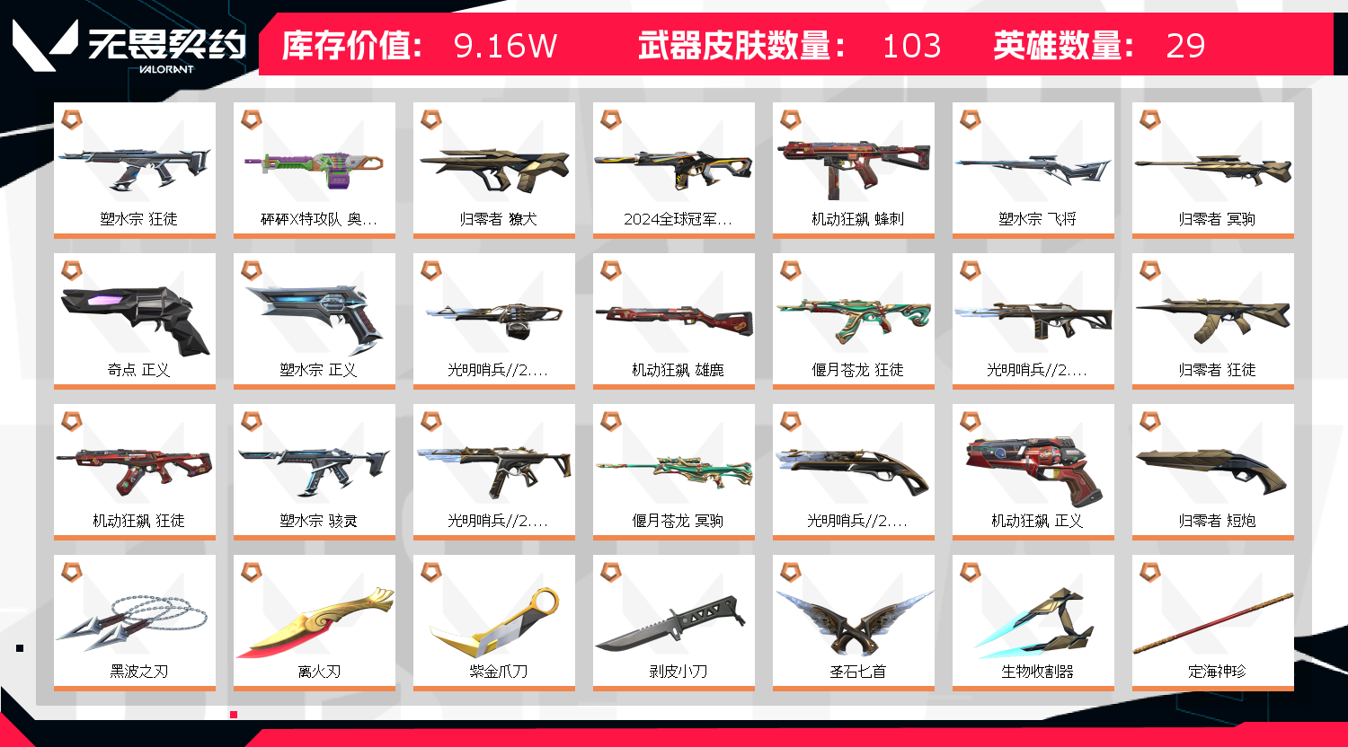 首页 > 租号大厅 > 无畏契约-wegame > wegame/wegame > 9.2W库存精品号✨24套 ✨离火✨机动狂飙✨塑水✨归零✨光明✨盖亚 剥皮 扇子刀