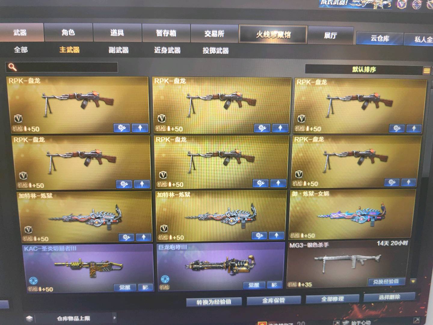 生化爆破挑战3全装 传说暗裔+白虎+6黑骑士 HK417朱雀 柯尔特电竞装甲 cop白鲨 9a91烈火 王者之决(觉醒版)毁灭ag-cfpls15冠军皮肤 火麒麟冠军之心皮肤 毁灭冠军之怒皮肤 佣兵觉醒属性 6烈斯泰尔蝴蝶6盘炼狱不换弹!!;USP-雷暴,RPK-盘龙,QBZ03-金色蔷薇,M200-幻神,Scar Light-白虎,传说暗裔,
