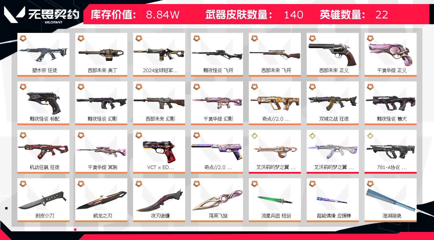 • 皮肤资产价值: 88390