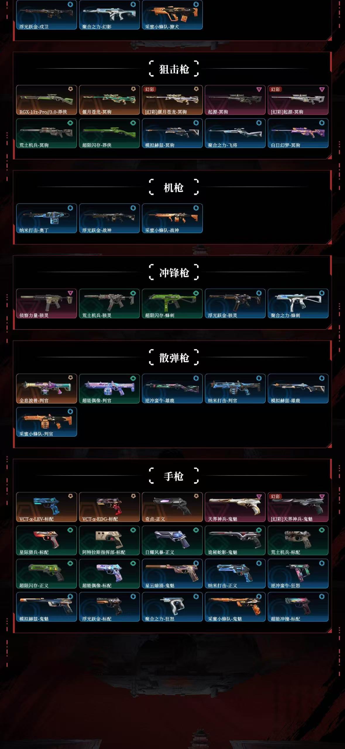 【拥有步枪】混沌序曲-狂徒,双城之战-狂徒,毁灭骑士-幻影,塑水宗-狂徒,全息波普//2.0-狂徒,盖世英雄-狂徒,盖亚的复仇-狂徒,侦察力量-幻影,冰点凝冻-獠犬,般若假面-幻影
