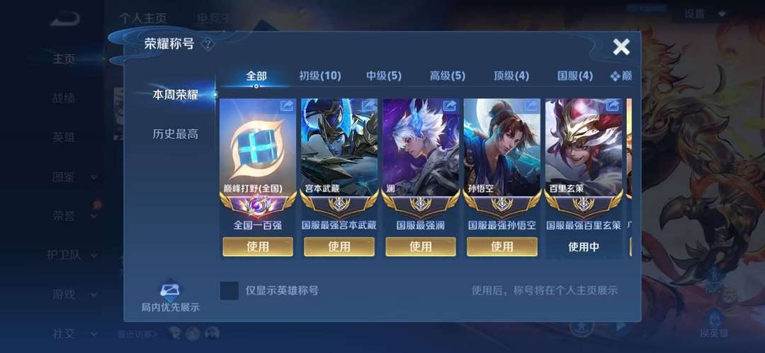 立即租号首页 > 租号大厅 > 王者荣耀 > 标题写明区服/QQ > 巅峰全国100名⭐4月正式服在榜4国服百里玄策澜宫本武藏孙悟空⭐巅峰百强打野⭐可排禁巅峰