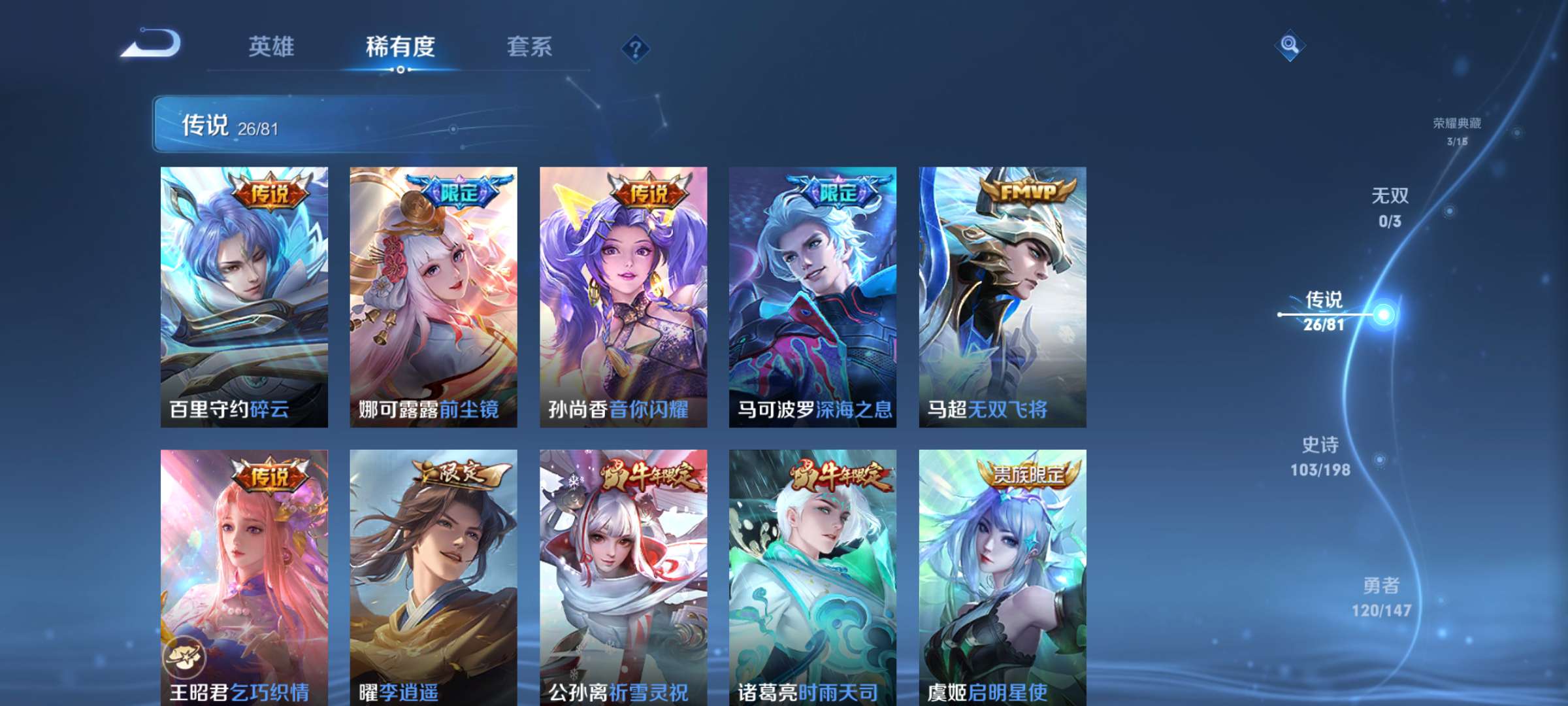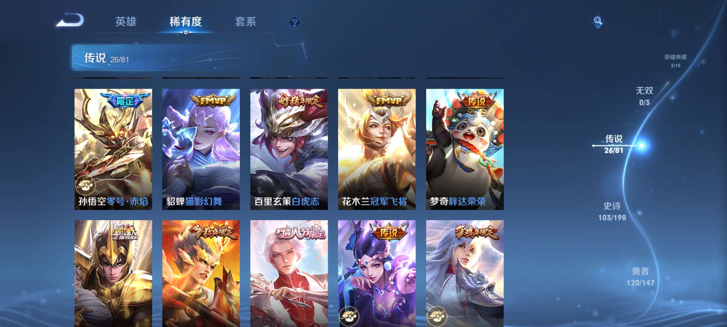 【非云直上】537满皮满典藏12星元◎鲁班新皮◎虞姬星元◎天使星元◎白金战神◎妲己绝版星元