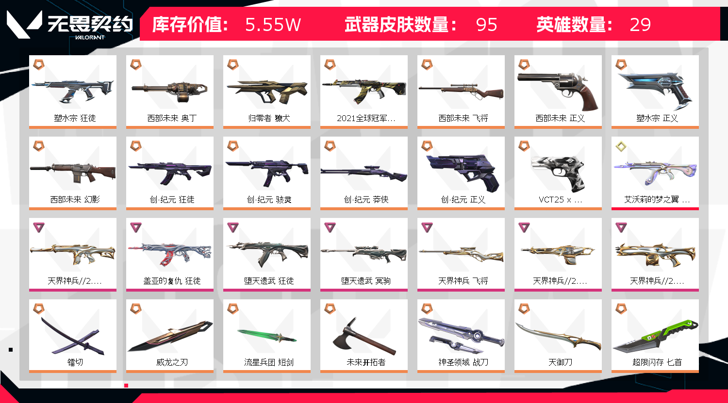 • 皮肤资产价值: 55540