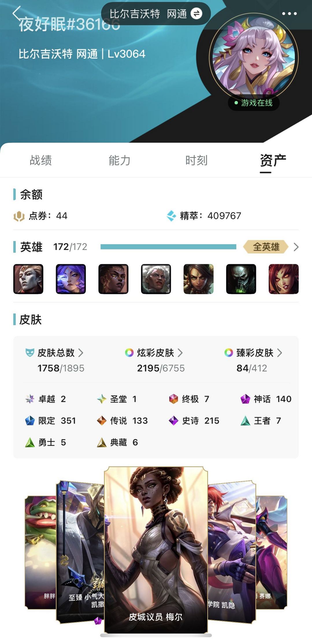 美女号主喲🌺 1000加皮肤 至臻 海克丝 龙虾 摄魂VN花木兰原计划 电玩情人节各种周年
