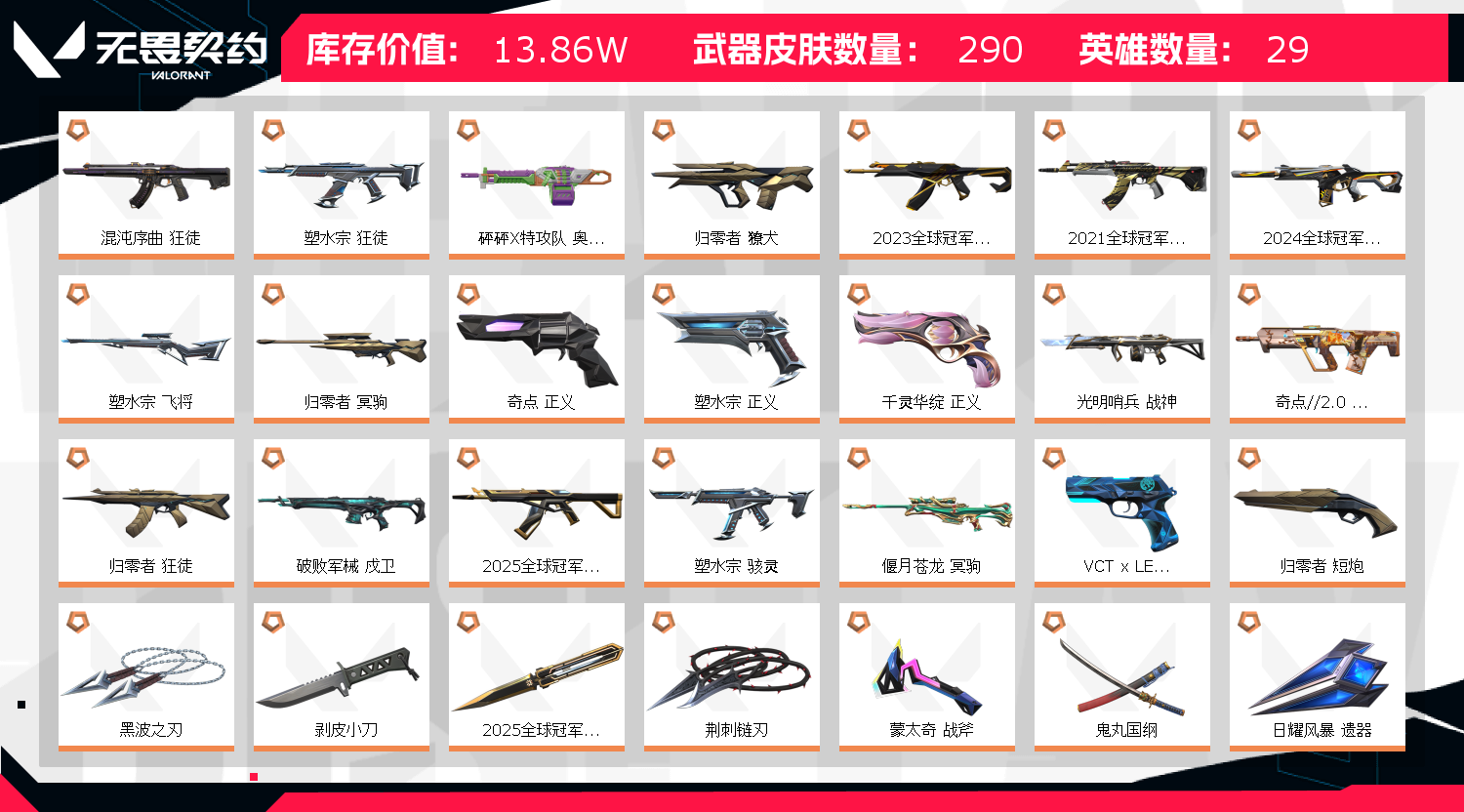 首页 > 租号大厅 > 无畏契约-wegame > wegame/wegame > 荆刺链刃14万库存❤2122232425冠军❤怜悯鬼丸黑波❤猫猫塑水宗恶鬼2.0奇点2.0归零天界