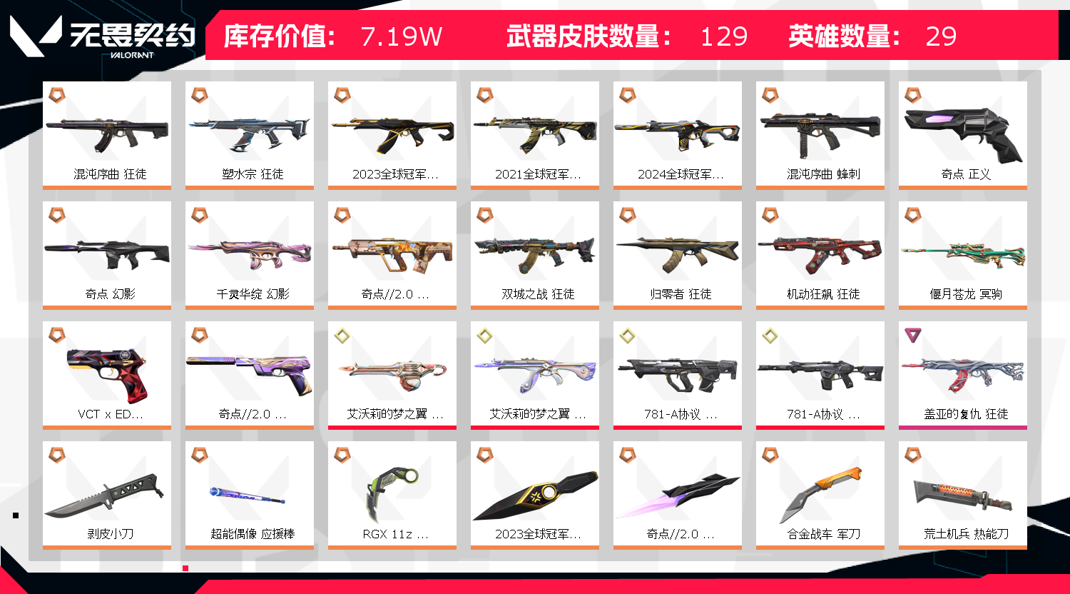 • 武器皮肤数量: 129