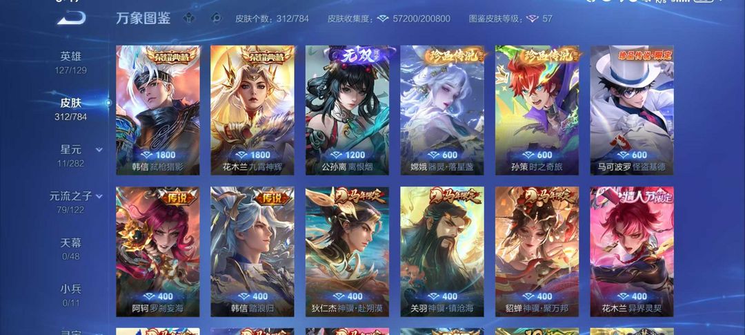 V10、550皮14水、吕布典藏-千魇归渊、云缨-神骥·越千峰、怪盗基德、伽罗星传说红枫、瑶典藏拾光映像、冥王哈迪斯、、龙年限定、齐天大圣