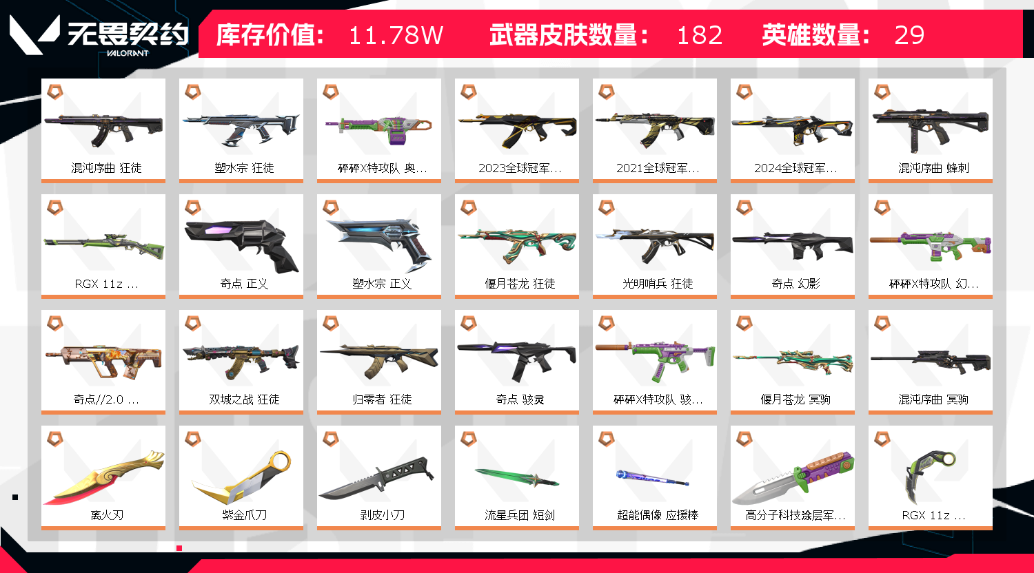 首页 > 租号大厅 > 无畏契约-wegame > wegame/wegame > 全冠军2000r点全限定12w库❤️21222324冠军离火爆爆双城❤️炫彩狂徒❤️四个神话挂饰