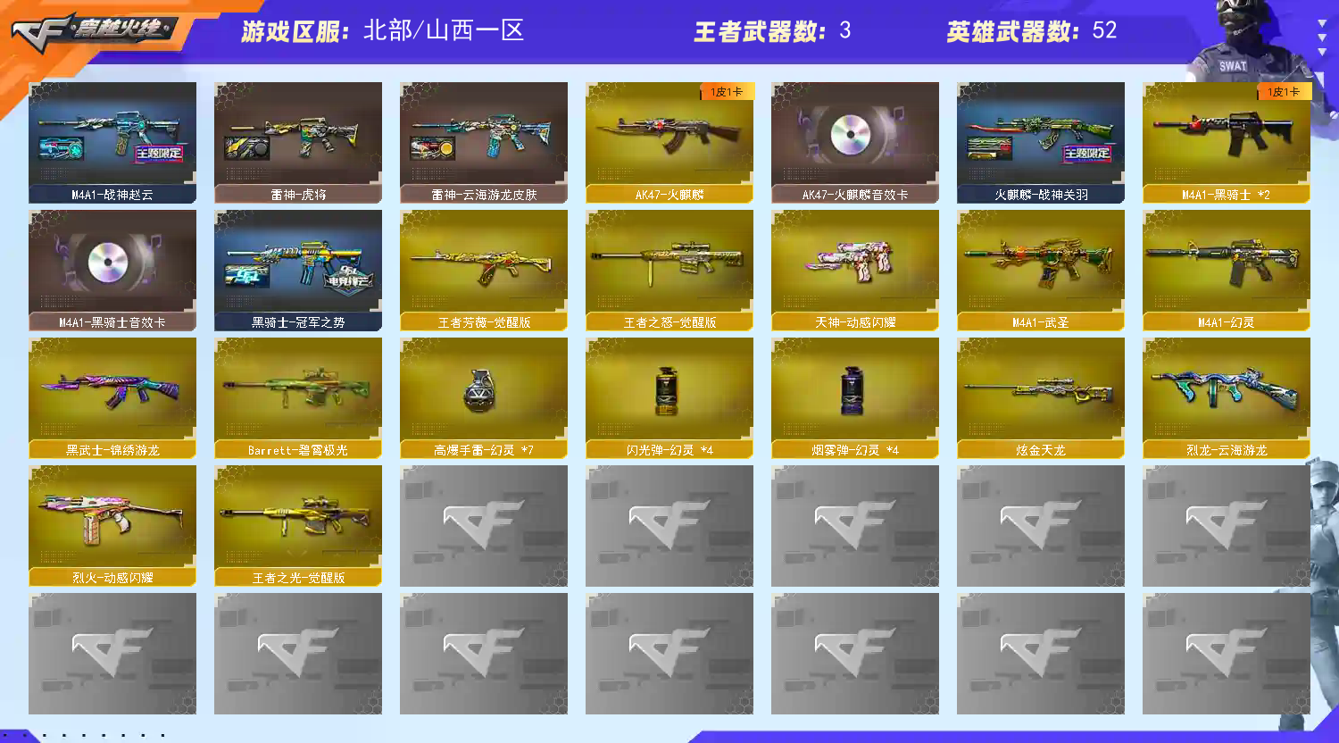 • 游戏区服:穿越火线 / 北部 / 山西一区