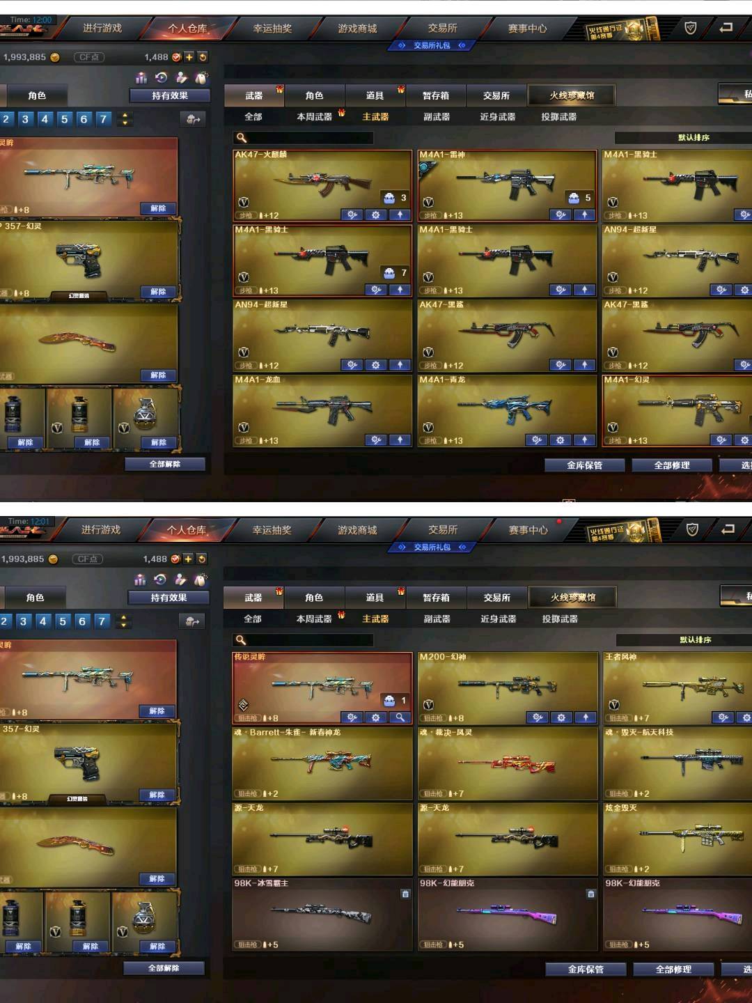 【遇到信用分不足时请去旧版大厅进入普通频道,感谢】 【步枪系列】M4A1-雷神*3/千变/黑龙*3/黑骑士*2/死神*8/武圣*4/龙血*3/玫瑰精灵*2/猎神/精英刀锋/AK47-火麒麟*3/无影*2/黑武士*4/机械迷城/猩红传说/战士/战神/桃园结义/火麒麟-灵狐/AN94-超新星*2/QBZ03-金色蔷薇*2/9A91-烈火/激光毁灭者/ 【狙击枪】M200-竞技荣光幻神 /AWM-天龙/裁决/Barrett-毁灭*7/极光*3/暗月传说/金色蔷薇*2 【辅助枪】 RPK-盘龙 *6/ 加特林炼狱*2/悦蓝/汤姆逊-烈龙*6/AA12-雷霆/激光毁灭者III/巨龙咆哮III/乱世/征服者/迷你生化手雷*2/死亡之眼/ 斯太尔蝴蝶 / 六烈六盘 / 六盘六烈 / 6烈6盘 / 6盘6烈 /生化号 / 爆破号/ 【炫金王者】王者之魄觉醒/王者之幻觉醒/王者之魂觉醒/王者之锋/王者之击觉醒/炫金千变/雷神/黑龙/天龙/机械青龙/赤魂 【角色】电竞教官-云悠悠【自定义4防】王者葵-貂蝉/樱/空/魅影/狐影/灵狐者-黄金海岸/樱-缤纷夏日/零-水下丽影/王者樱-热浪之夏(跳舞)/铁骑荣耀/北极狐x/青霞仙子/雪莉杨/夜玫瑰x【佣兵觉醒:生化无需换弹/捕食者之眼】 【副武器】 柯尔特-竞技荣光/USP-雷暴/沙鹰-天神 /沙鹰-修罗/COP-堕天神/摸金校尉/COP-旗袍/MAC-涂鸦 【近身武器】擎天-竞技荣光/麒麟刺 / 龙啸 / 屠龙 /擎天/尼泊尔雷霆/斩神刀雷暴/麒麟刺-堕天神/龙啸-堕天神/手斧-镜 【投掷武器】竞技荣光套装/雷霆套装*2/雷暴套装/堕天神套装*2/迷你生化手雷*2 【通用道具】双1-7背包 / 手枪弹匣 / 金蛇戒 / 狙击枪弹夹 / 魔龙戒 / 散弹枪弹夹 / 圣龙戒 / 挑战弹夹 / 银蛇戒 / 防弹头盔 / 烟雾保护头盔 / 防弹衣 / C4工具钳 / 手雷包 / 步枪弹匣 / 冲锋枪弹匣 / 机枪弹匣 / 闪光护目镜/超级护目镜/超级背包/透明头盔/透明护目镜/新彩色昵称/C4.红龙-翡翠-枪王排位/KZ-战队击杀图标/夏日击杀图标/Estar-击杀图标/R.LGD击杀图标/金色击杀图标 【生化专用道具】永久生化弹夹/防化服/幽灵之刃/减少停顿道具(不退包)/灵魂忍者/绿巨人/变异宝贝/ 伪装幽灵永久/迷你生化手雷 / 肩膀佩戴超级对讲机(榴弹3/22) 【皮肤玩偶音效】【火麒麟AG战队皮肤/雷神*3/CFS2018/CF-STAR*2】【黑龙能量核心】【雷神星空/能量核心*2/暗月/荣耀之魄】【无影耀金/暗月/能量核心】【死神秘银】【黑武士361】【天龙STAR/秘银/能量核心】【毁灭星空/耀金/暗月】【极光能量核心*2】【炼狱星空】【修罗CF2018*4/星空/能量核心】【屠龙荣耀之锋*3】 葫芦兄弟/王胖子/小红玩偶/暴躁猪猪玩偶/白狼玩偶/剑齿虎玩偶*2/审判者玩偶/黄金幸运猪猪玩偶/幸运鼠玩偶/金色幸运鼠玩偶/深渊红龙玩偶/铁骑玩偶*2/王者刀锋玩偶/关羽玩偶/猫头鹰玩偶/【音效卡-毁灭/黑骑士/火麒麟*2/雷神】 【4大战区】西部战区;USP-雷暴,电竞教官-云悠悠,RPK-盘龙,QBZ03-金色蔷薇,M200-幻神,Kar98K-星神,