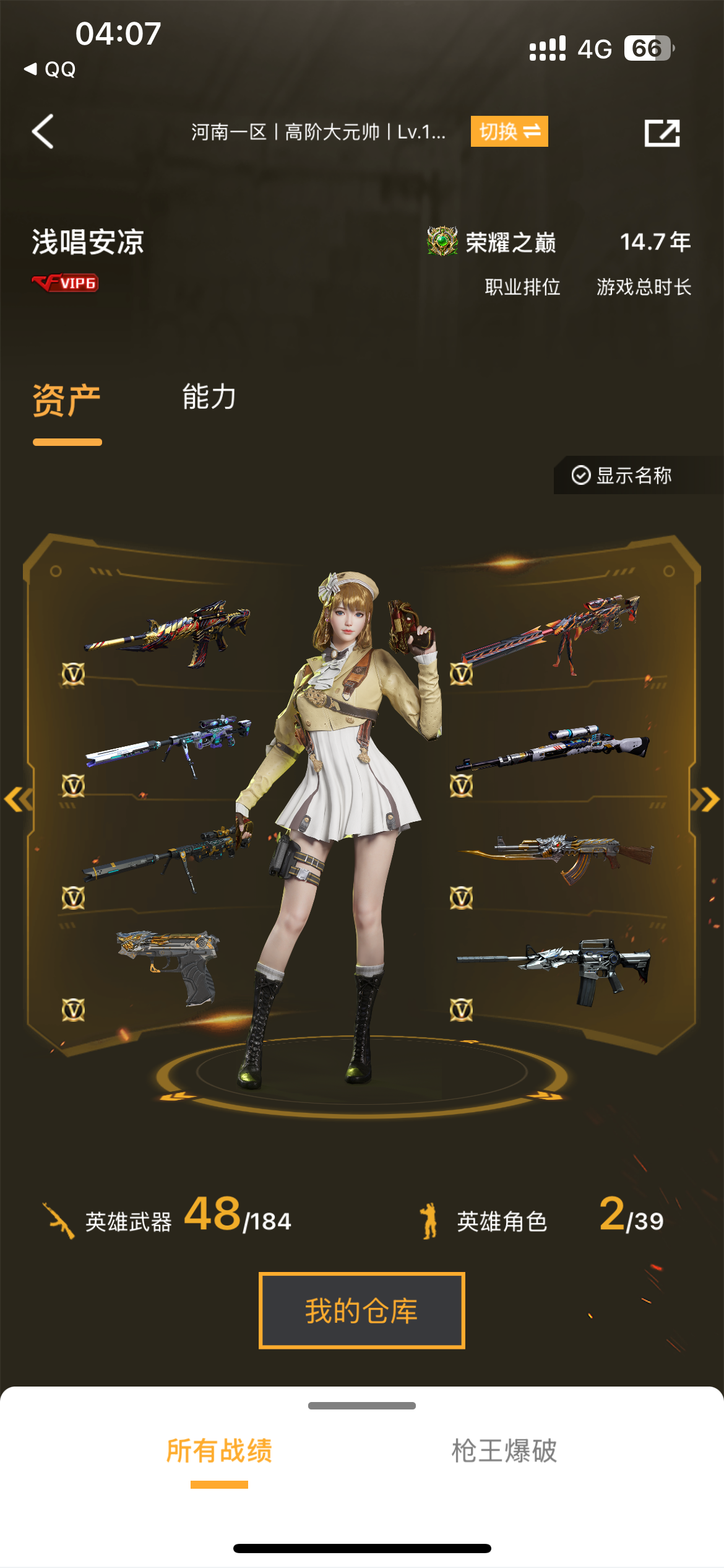 科技大佬求放过 小本经营 传说暗裔、传说幽瞳 98k星神 音效卡 火麒麟:AG 枪娘 关羽 皮肤 音效卡 雷神:赵云 能量核心 黑骑士: 音效卡 1皮肤 毁灭:枪娘 音效卡 经济荣光套装;USP-雷暴,电竞教官-云悠悠,传说幽瞳,M200-幻神,Kar98K-星神,传说暗裔,