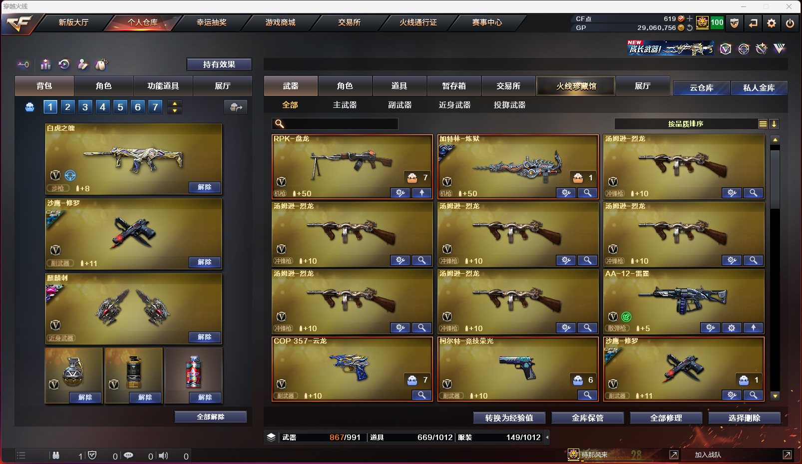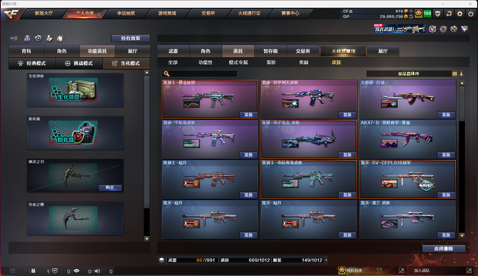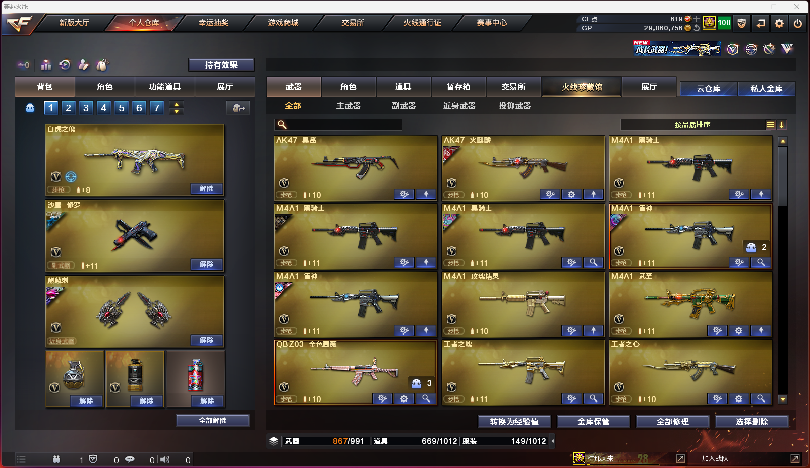 双全装/四防隼+六列蝴蝶+6盘炼狱小刚、四防迷迭香+幻神+星神+白虎之魄等等 生化:四防隼(生化加强角色)+六烈蝴蝶+6盘带皮炼狱(有炼狱-小钢) 爆破:四防迷迭香+幻神+星神+裁决+毁灭(音效卡、多皮)+白虎之魄+雷神(N9多皮)+金色蔷薇+黑骑士(多皮)+王者之心+14发子弹COP云龙、柯尔特 40+皮肤(毁灭、雷神、黑骑士、火麒麟、修罗、屠龙、麒麟刺等等) 7套英雄级手雷(竞技荣光、夜魔、幻灵) 排位请务中途退出、后台会有记录、发现必拉黑举报! 喜欢的小伙伴麻烦点个收藏,谢谢大家!;隼,RPK-盘龙,QBZ03-金色蔷薇,M200-幻神,Kar98K-星神,