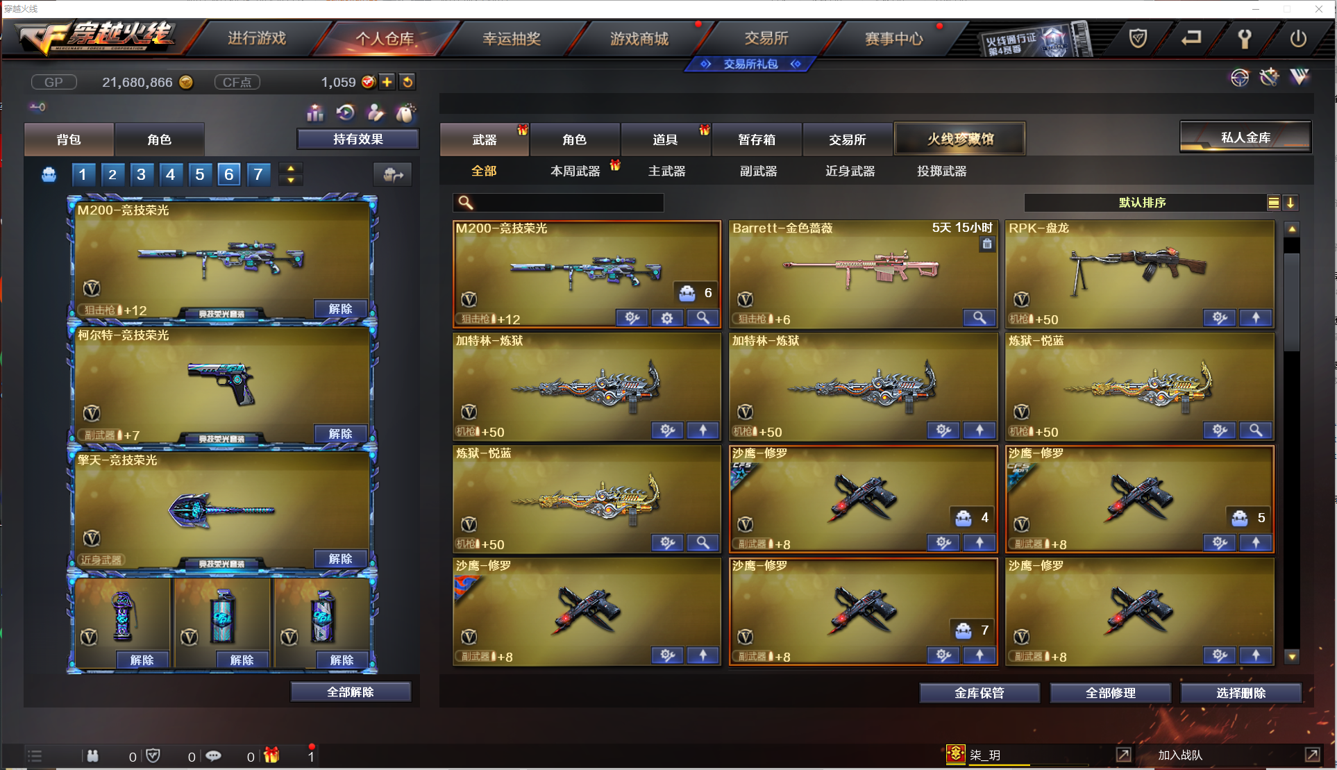 首页 > 租号大厅 > 穿越火线 > 电信区/广东一区 > M200竞技荣光全套|4加特林炼狱|82V王者瞳闭月羞花|王者方薇|炫金雷神|毁灭音效卡|爆破全装号