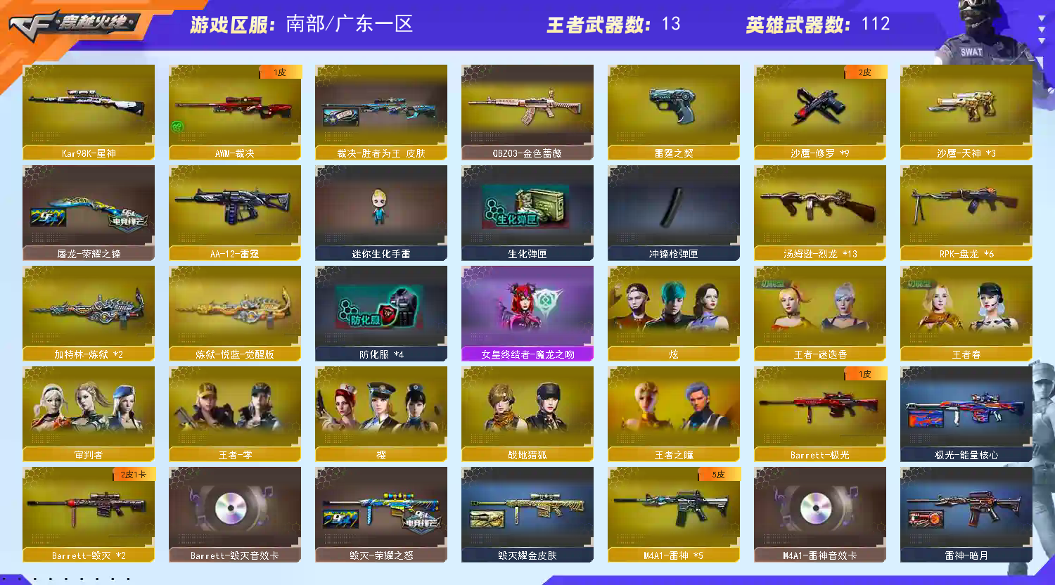 首页 > 租号大厅 > 穿越火线 > 南部/广东一区 > 【生爆挑三全号】星神⚡裁决⚡满副⚡6烈6盘+死眼炼狱⚡6黑⚡雷神+音效⚡毁灭+音效⚡王者火魄⚡QBZ