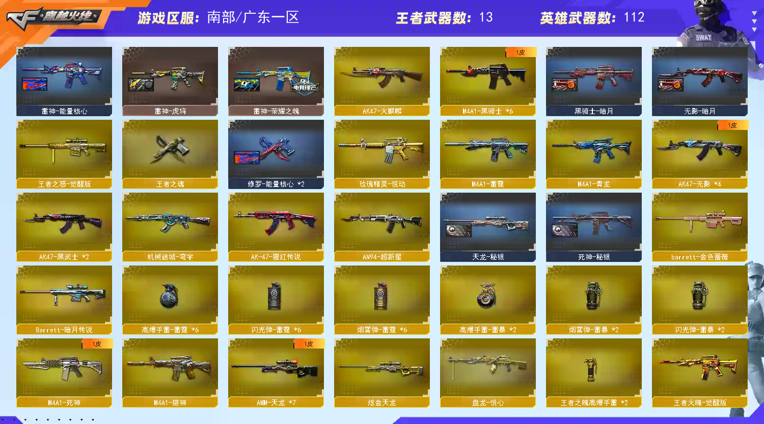 • 游戏区服:穿越火线 / 南部 / 广东一区