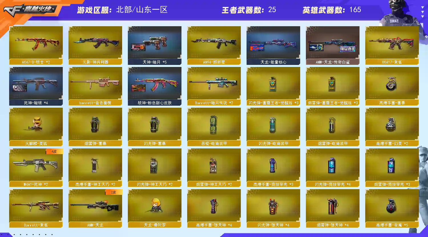 • 游戏区服:穿越火线 / 北部 / 山东一区
