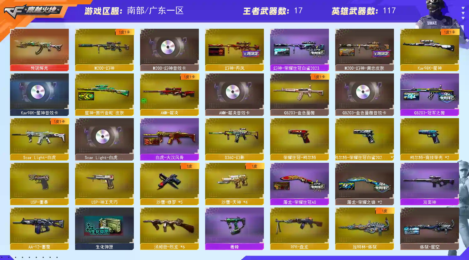 裁决音效卡 幻神音效卡 星神音效卡 幻神荣耀世冠白鲨2023 星神傲竹金蛇 全竞技荣光 炼狱小钢 6烈龙+毒蜂;USP-雷暴,荣耀世冠-柯尔特,柯尔特-荣耀世冠白鲨2023,电竞教官-云悠悠,王者沙漠玫瑰,RPK-盘龙,QBZ03-金色蔷薇,