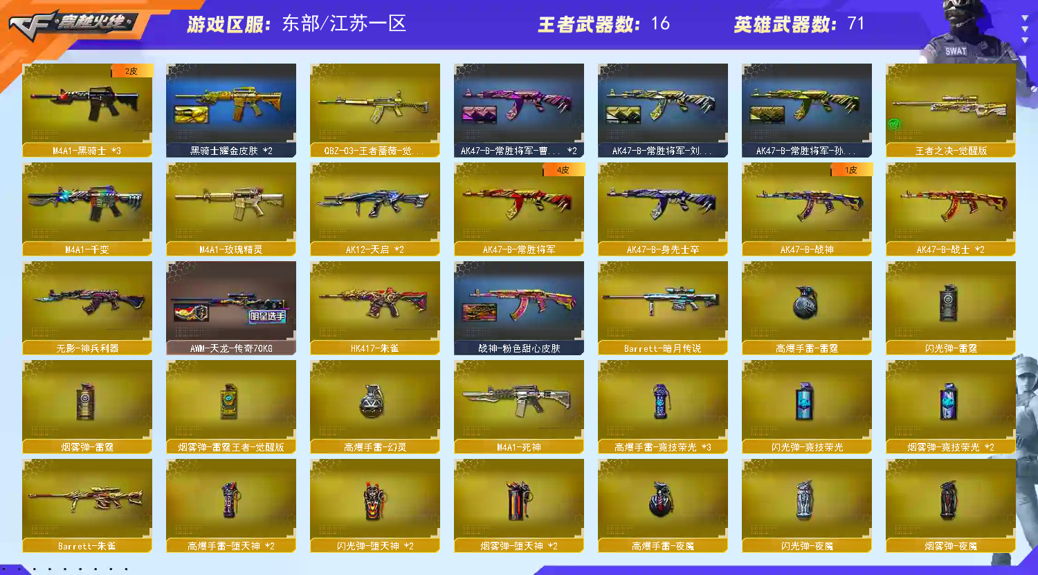 • 游戏区服:穿越火线 / 东部 / 江苏一区