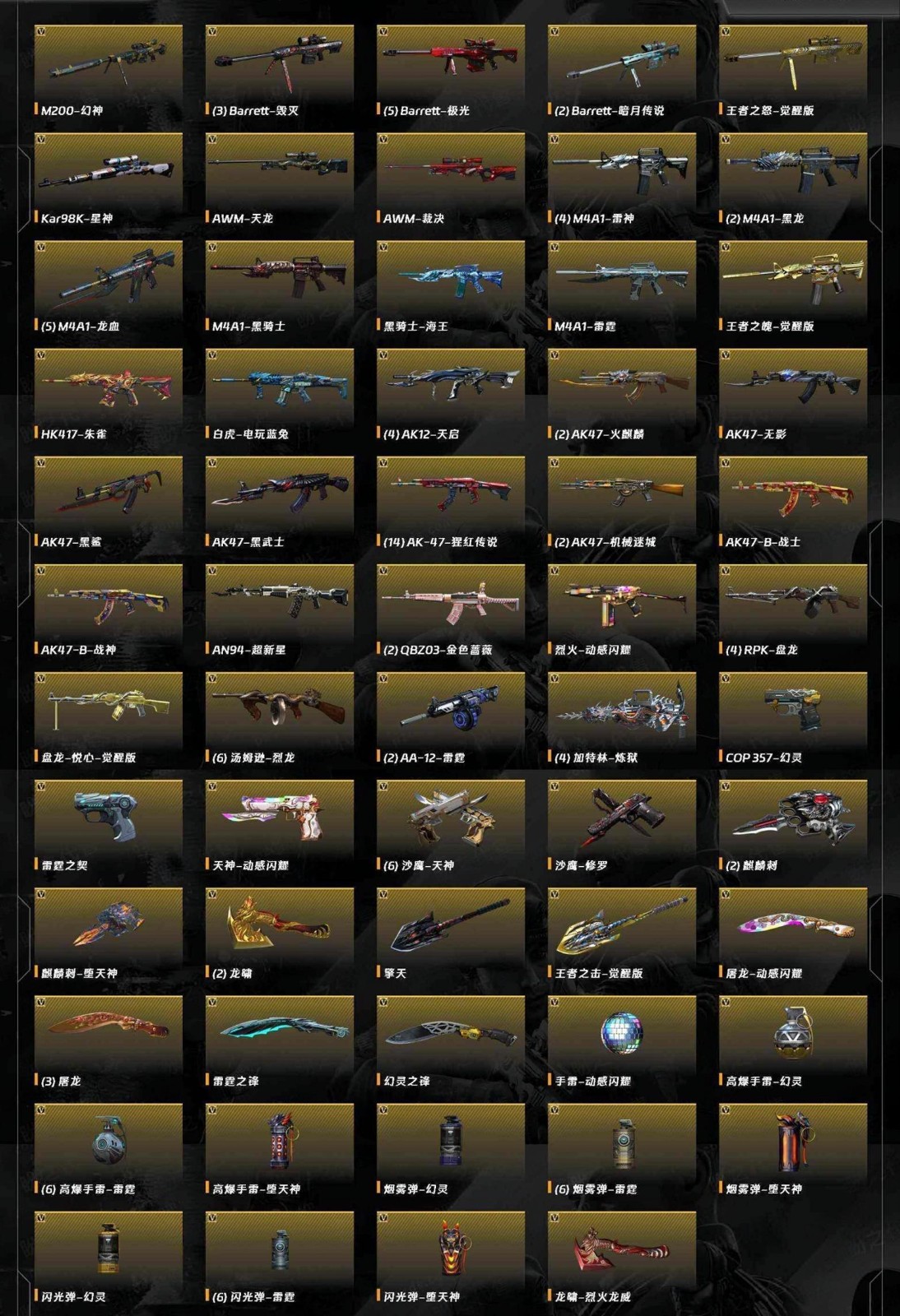游戏之前需要安装【反作弊预启动模式】重启电脑,不安装会进游戏就闪退. 【重要武器】幻神 星神 HK417-朱雀 QBZ03-金色蔷薇 白虎-电玩蓝兔 王者之魄-觉醒版 龙啸-烈火龙威 6烈4炼狱 【幻神皮肤】幻神-动感闪耀皮肤 M200-幻神-周瑜 M200-幻神-荣耀世冠白鲨 Kar98K-星神-AG-CFPLS21冠军皮肤 【副武器】COP357-幻灵 雷霆之契 天神-动感闪耀 沙鹰-天神X6 沙鹰-修罗 【重要角色】炫 零 葵 王者涂鸦 王者沙漠玫瑰 王者-零 狐影 乔伊教练 电竞少女 铁骑荣耀 空 零-水下丽影 灵狐者-黄金海岸 【重要音效卡】M200-幻神音效卡 M200-幻神-动感闪耀音效 Kar98K-星神音效卡 屠龙-动感闪耀 音效卡 Barrett-极光音效卡 M4A1-黑骑士音效卡 M4A1-雷神音效卡 Barrett-毁灭音效卡 AK47-火麒麟音效卡 加特林-炼狱音效卡 【近身武器】麒麟刺X2 麒麟刺-堕天神 龙啸X2 擎天 屠龙-动感闪耀 屠龙X3 幻灵之锋 雷霆之锋 龙啸-烈火龙威 【温馨提示】此号价值数万,已向公安机关报备,如有开G开辅助封号的,由平台提供,身份信息证据和地址进行报警处理并依法追究.;王者沙漠玫瑰,RPK-盘龙,QBZ03-金色蔷薇,M200-幻神,Kar98K-星神,